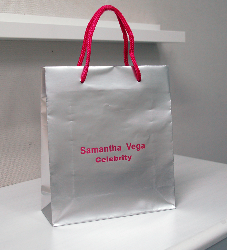 またまた蒸着紙のかっこいいショップ袋2012年07月04日 こんにちはベリービーの芦谷です。 今日もまたまた蒸着紙のカッコイイ紙袋をご紹介します。 シルバーつや消しの蒸着紙です。 落ち着いた輝きが大人っぽさを感じさせます。 輝きの上に輝きの演出!! 箔押しのロゴがキラキラして素敵です。 口折りに印刷された 深いピンクのプリントが 紙袋の存在感を引き締めています。 蒸着紙を生かしたシャープな紙袋のご紹介でした。