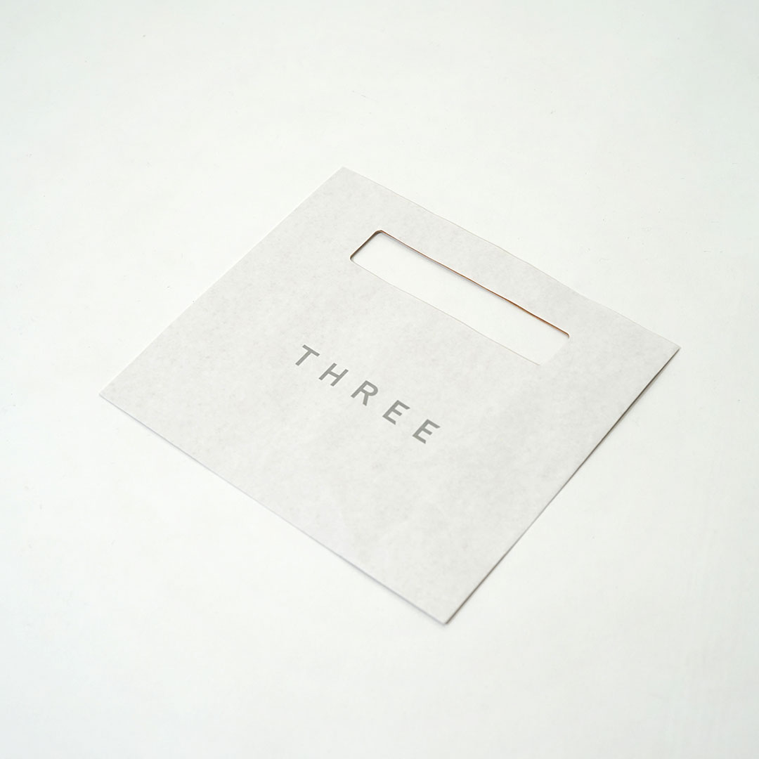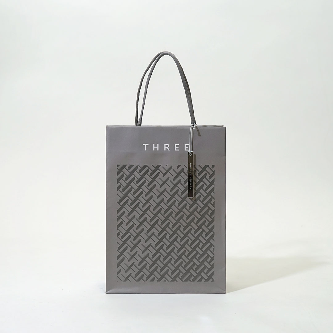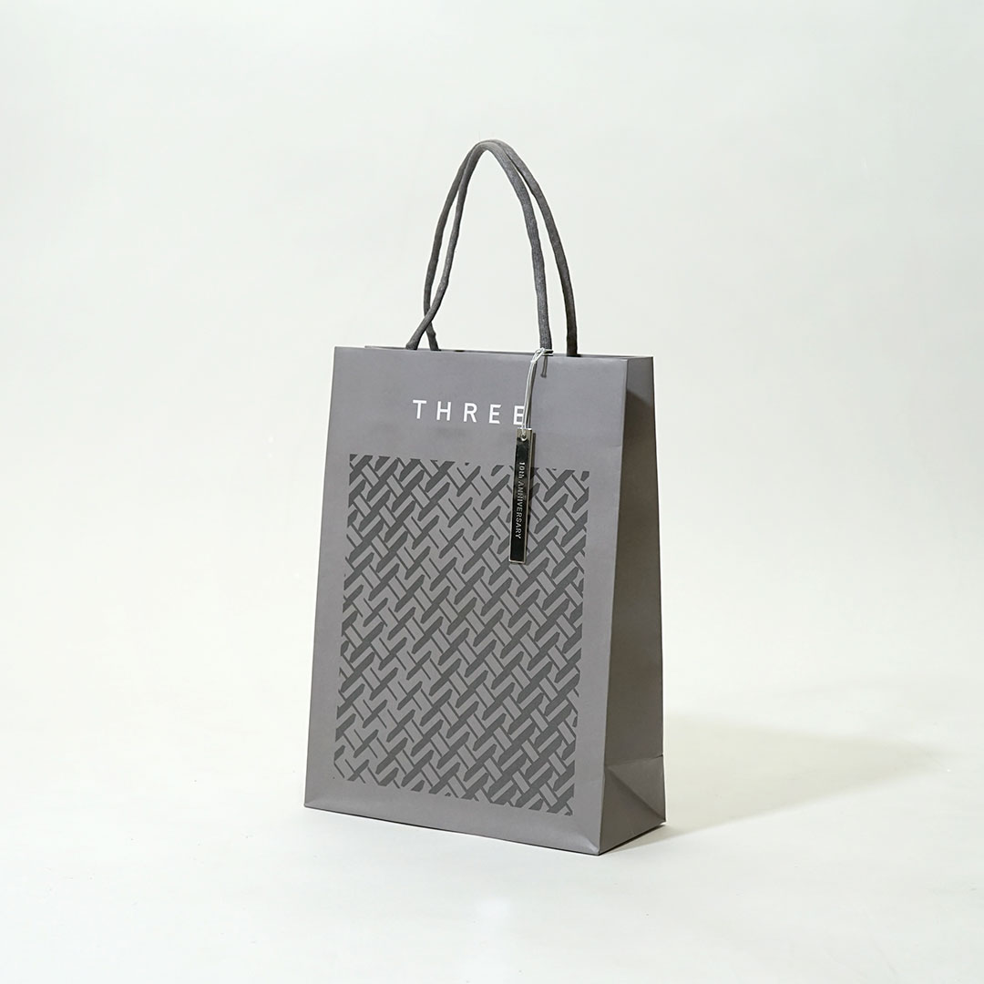 グレーを基調にまとめられたシックな紙袋と平袋