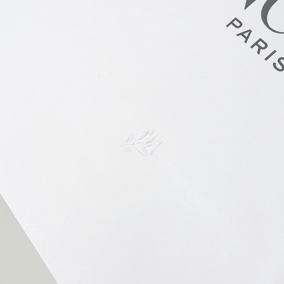 ロゴマークが浮き出し空押しで入っています。