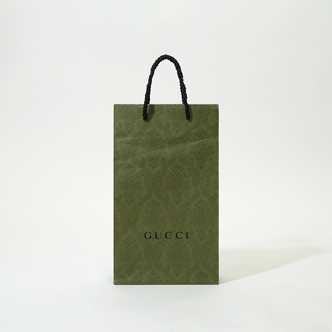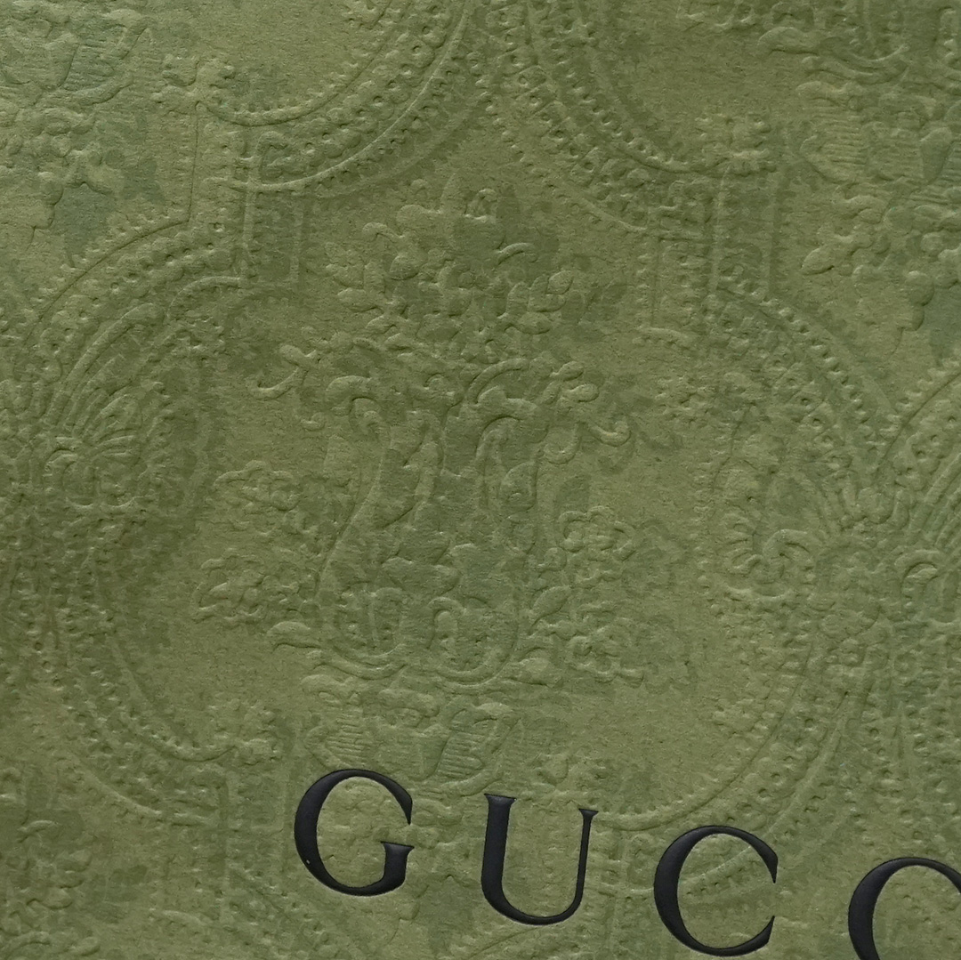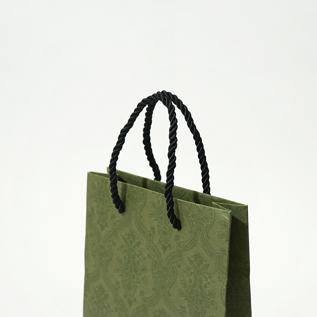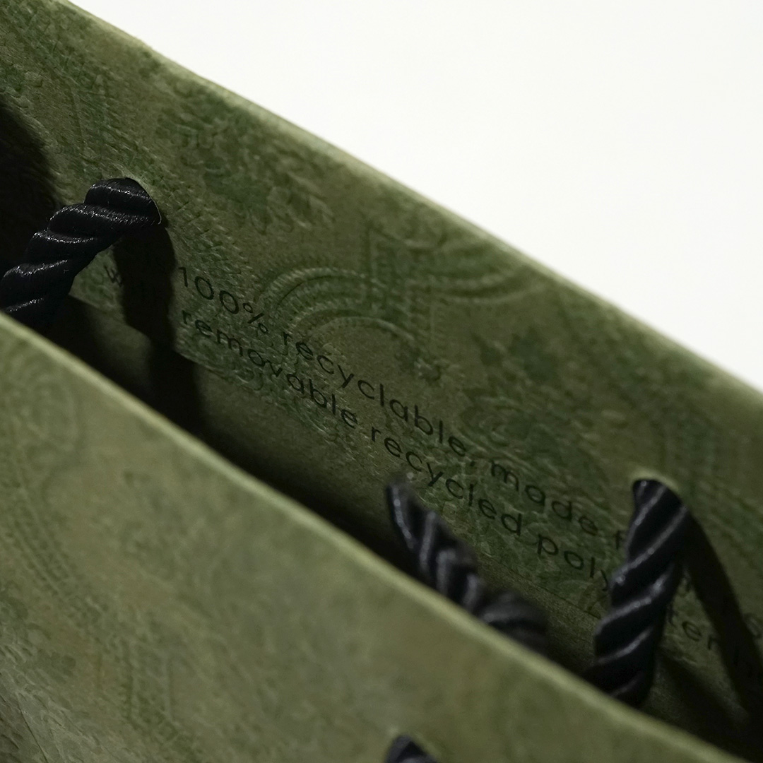 深いグリーンと総柄のエンボスで素敵な紙袋でした。