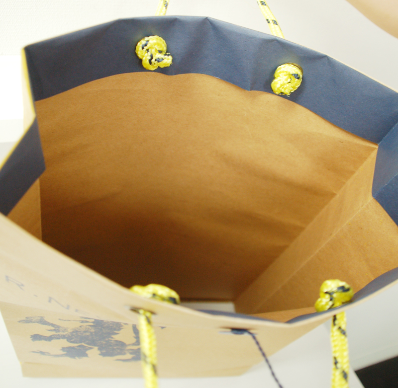 この紙袋はカラーリングや素材の使いかたで