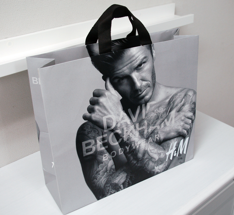 ど迫力のベッカム画像が紙袋全体にプリントされた紙袋です。