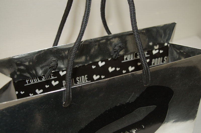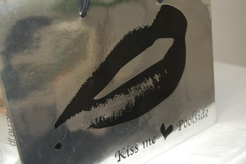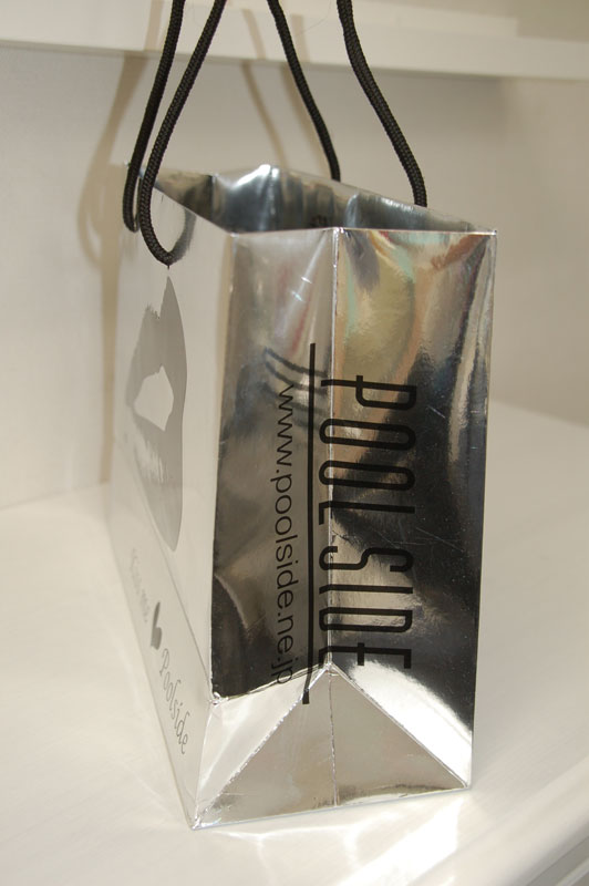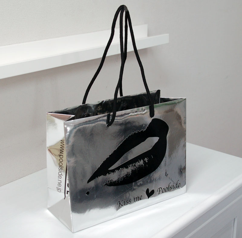 キラキラで元気いっぱいのショップ袋2012年08月09日 こんにちはベリービーの芦谷です。 今日は蒸着紙を使用した、とっても夏らしい元気のある紙袋をご紹介します。 大胆な「唇」のデザインが素敵ですね。 さらに浮きだしエンボスにより、ロゴマークと唇に立体感を与えています。 手提げ紐には目の細かいブライトスピンドルを使用しています。 内側にはロゴマークとかわいいハート。内側にもグロスPPが貼られて、高級感もタップリです。