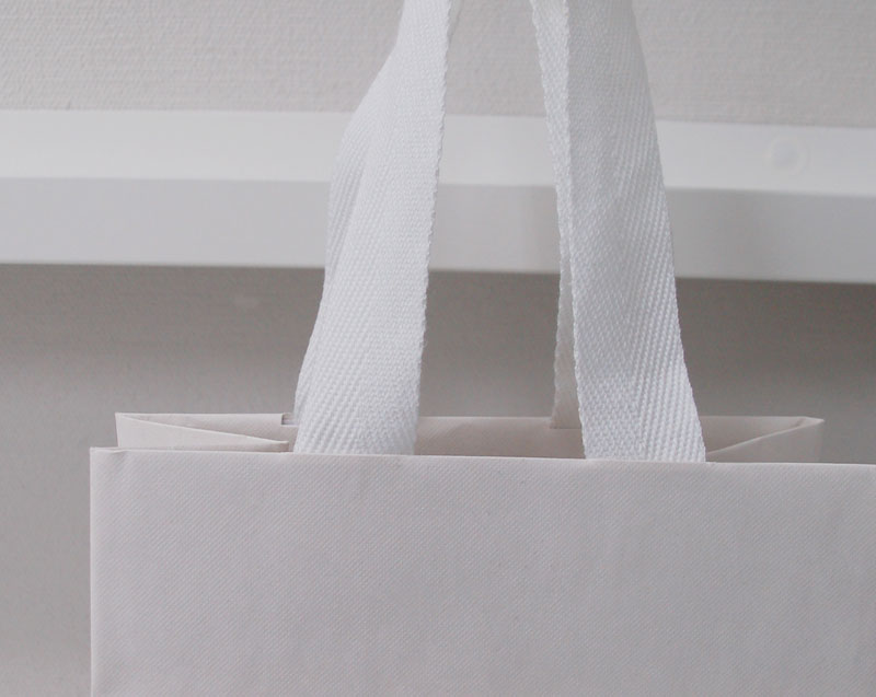 手提げ紐には通常よりも少し太めの白い平紐が使用されています。