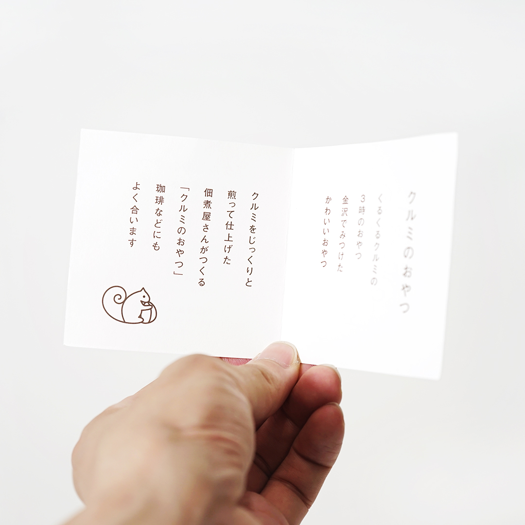 そしてこの「クルミのおやつ」は、細かい販促物にも可愛らしい工夫が見られます。