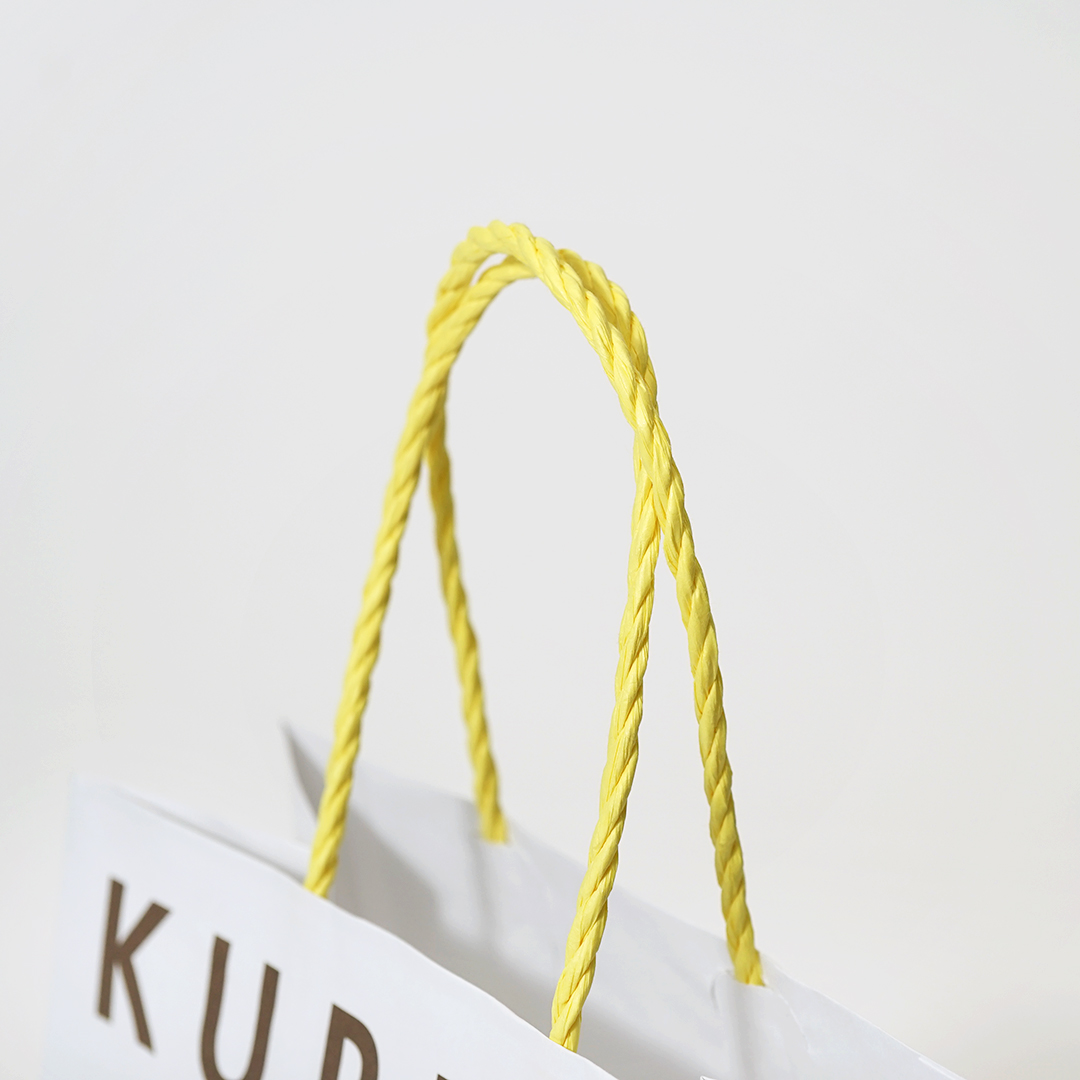 紙製のハンドルは環境への配慮を感じさせるだけでなく、全体のイメージにもピッタリ合っています。