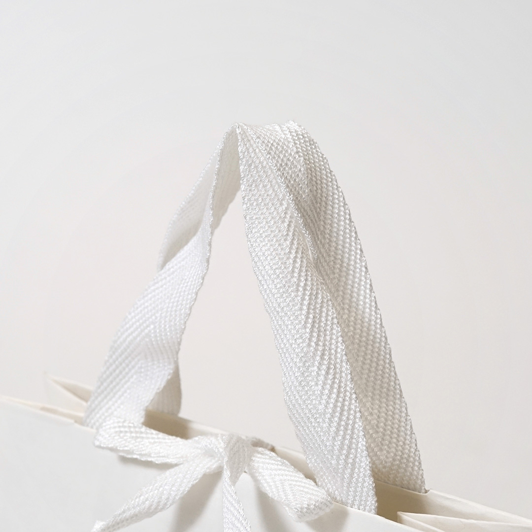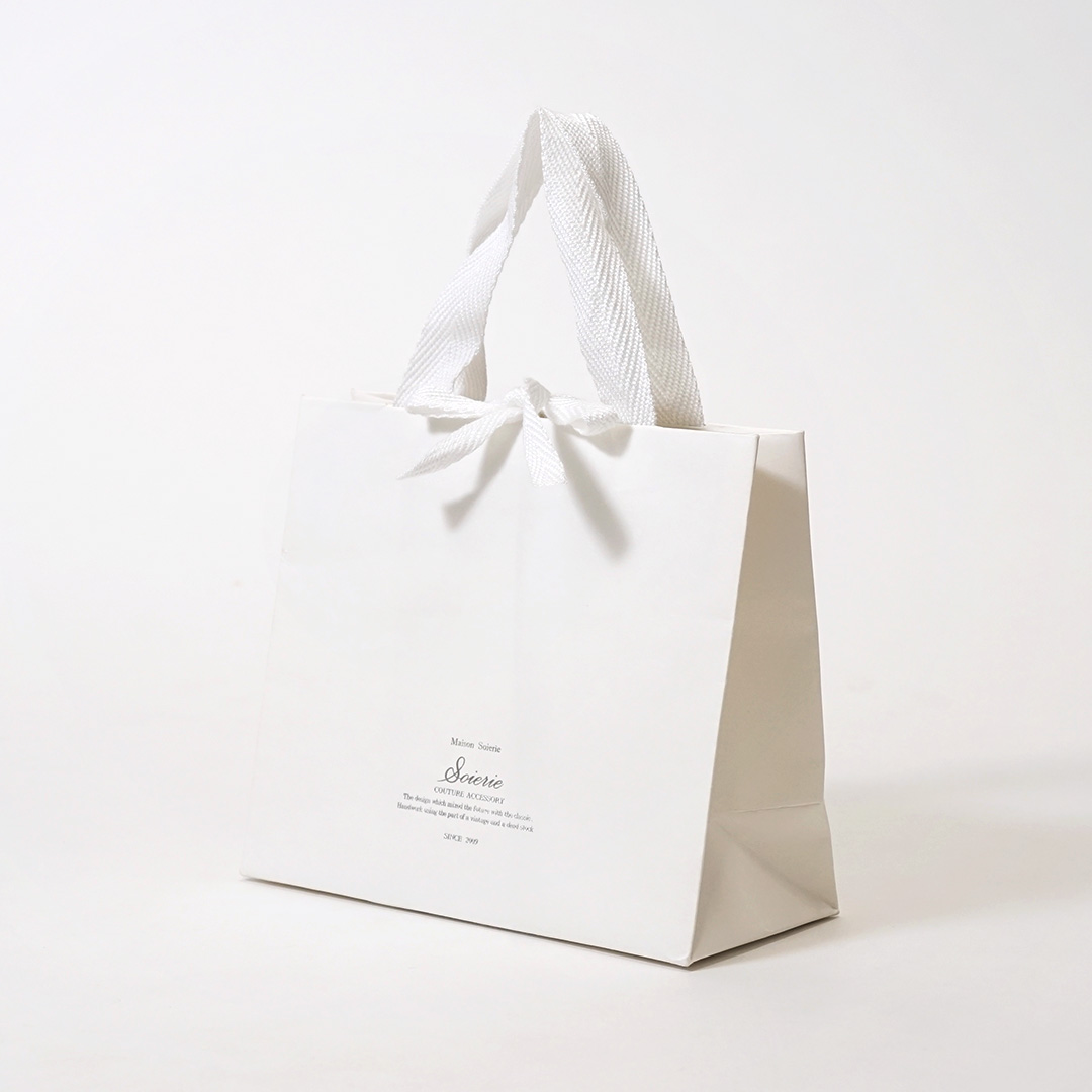 全体をホワイトでまとめたシンプルなデザインの紙袋です。