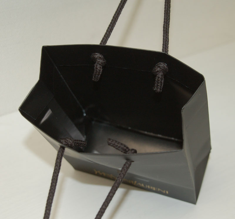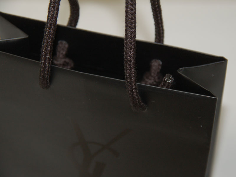 トラディショナルを感じさせるショップ袋2012年08月22日 こんにちはベリービーの芦谷です。 今日はとっても安定感のあるデザインの紙袋をご紹介させていただきます。 小さな紙袋ですが、とても存在感があります。 主張しすぎず存在感のあるUVのロゴマークがいいですね。 しっかり目のパイレンロープ。 内装もシンプルにブラックです。 ハイブランドの余裕を感じさせる、紙袋ですね。
