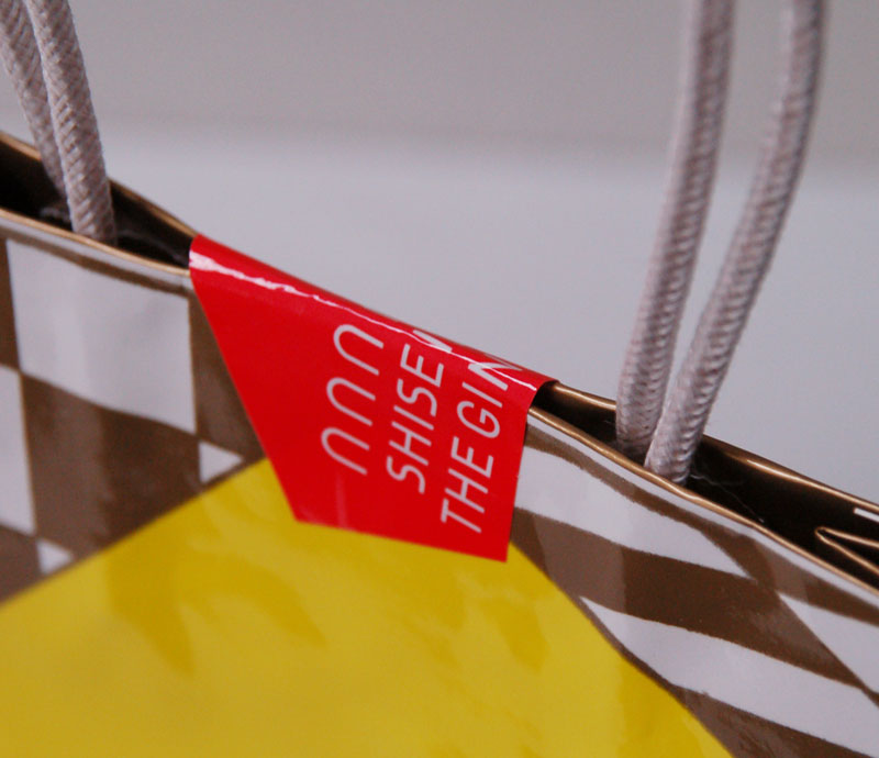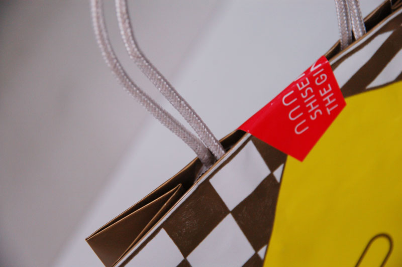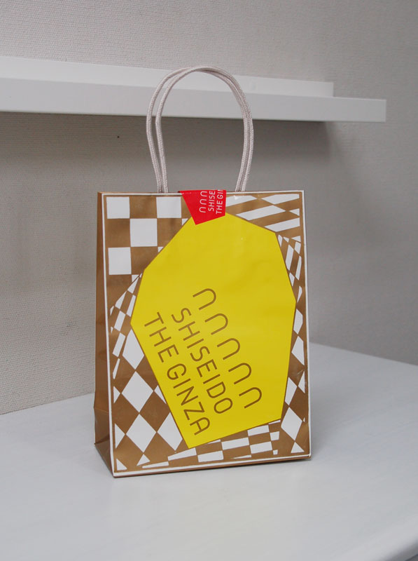 とてもポップなショップ袋2012年08月25日 こんにちはベリービーの芦谷です。 今日はとってもポップな紙袋をご紹介します。 この紙袋のデザインは 私の大好きなデザイナー仲條正義さんのデザインです。 口止めに使われているシールも 四角形では無く変形のトムソンで作られていてとってもオシャレです。 紐はホワイトシルバーのエクセルフィラメントが使用されています。