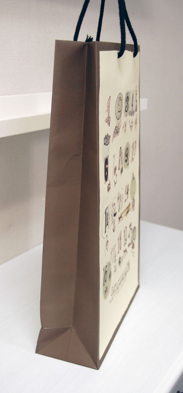 おしゃれなイラストのショップ袋2012年09月02日 こんにちはベリービーの芦谷です。 今日はイラストがとっても素敵な紙袋をご紹介します。 イラストがとってもおしゃれですね。 サイドのブラウンとクラシカルなイラストのテイストが とってもマッチしています。 手提げ紐はシンプルなアクリルスピンドル。 これからはイラストの紙袋が流行しそうですね。