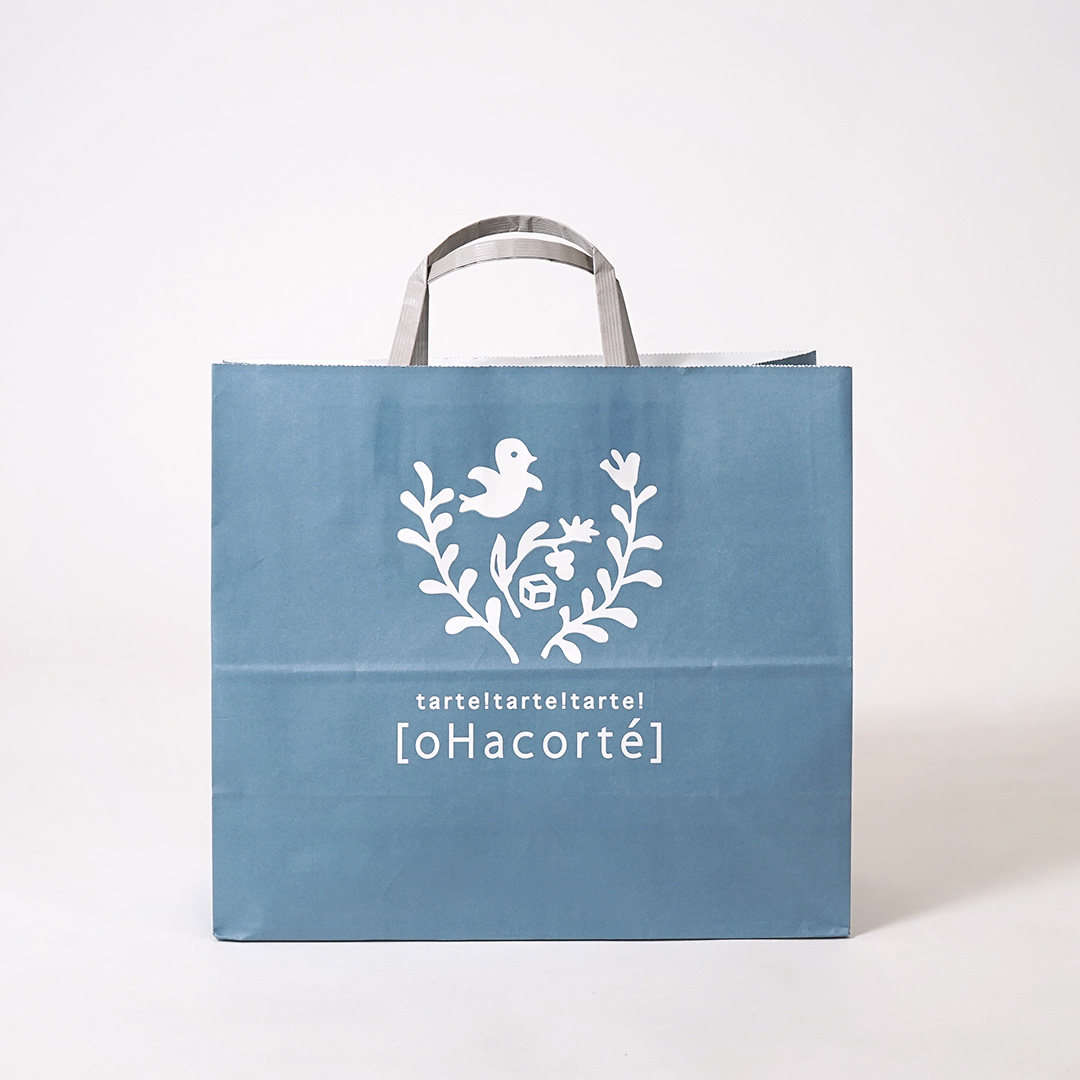 サブレを包む紙袋は、中央にロゴが大きくデザインされたシンプルなスタイルです。パッケージと同じくブルーが全面に使用されており、統一感がありながらも、ブランドの存在感をしっかりとアピールしています。持ち歩くことでブランドの広告塔にもなる、洗練されたデザインですね。
