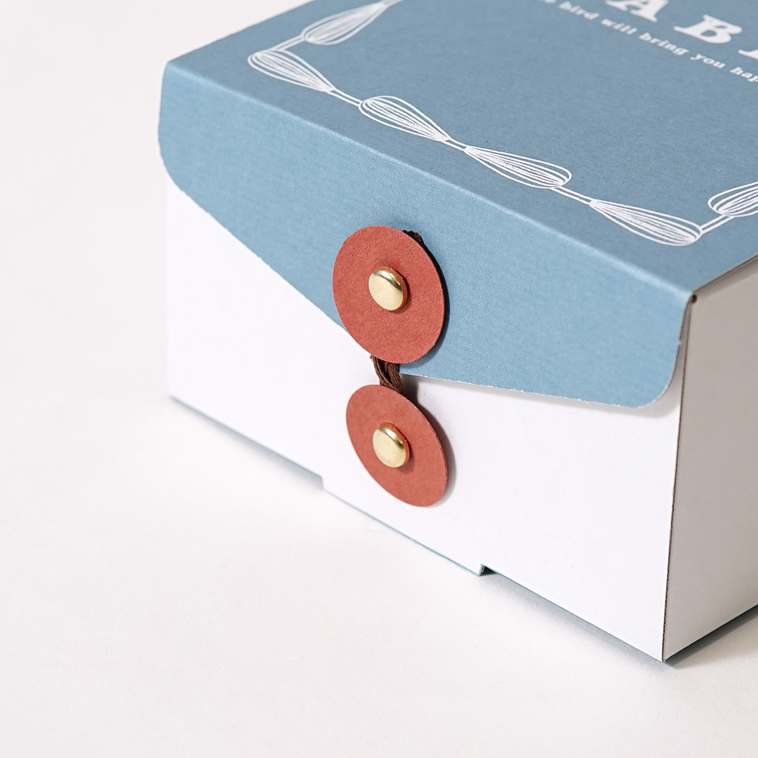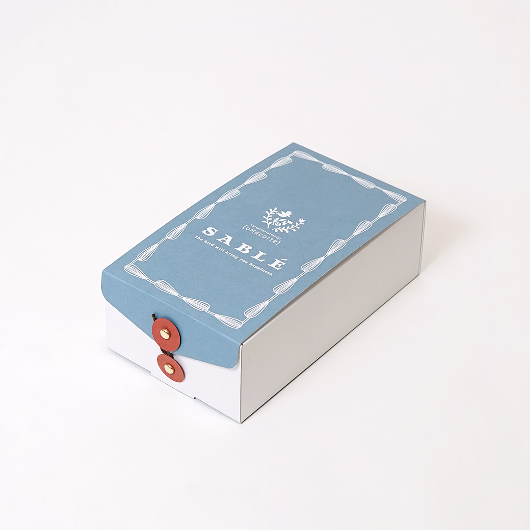 このパッケージのポイントの1つは、クラシカルな「玉紐」の留め具です。どこかレトロで懐かしい雰囲気は、商品の特別感を演出し、贈答品としても喜ばれるでしょう。