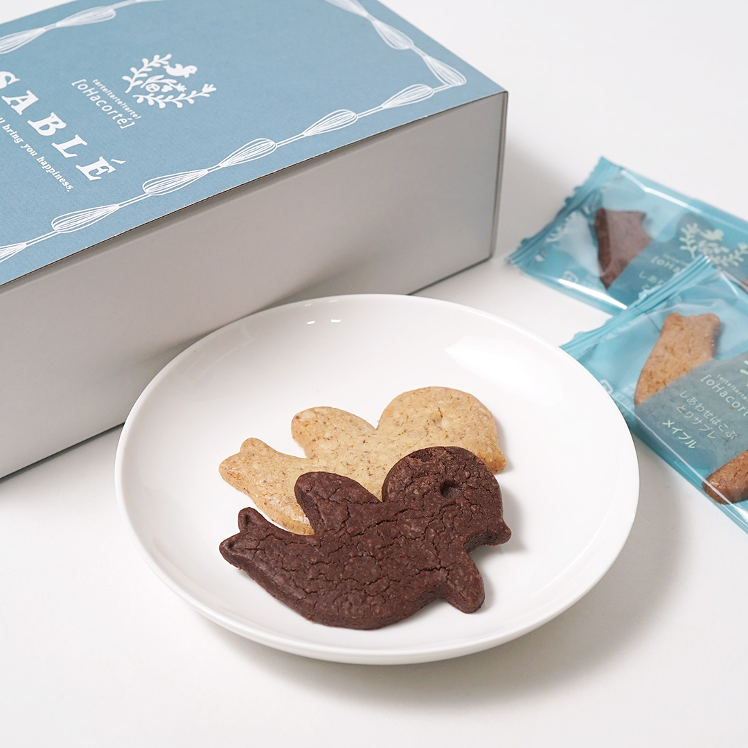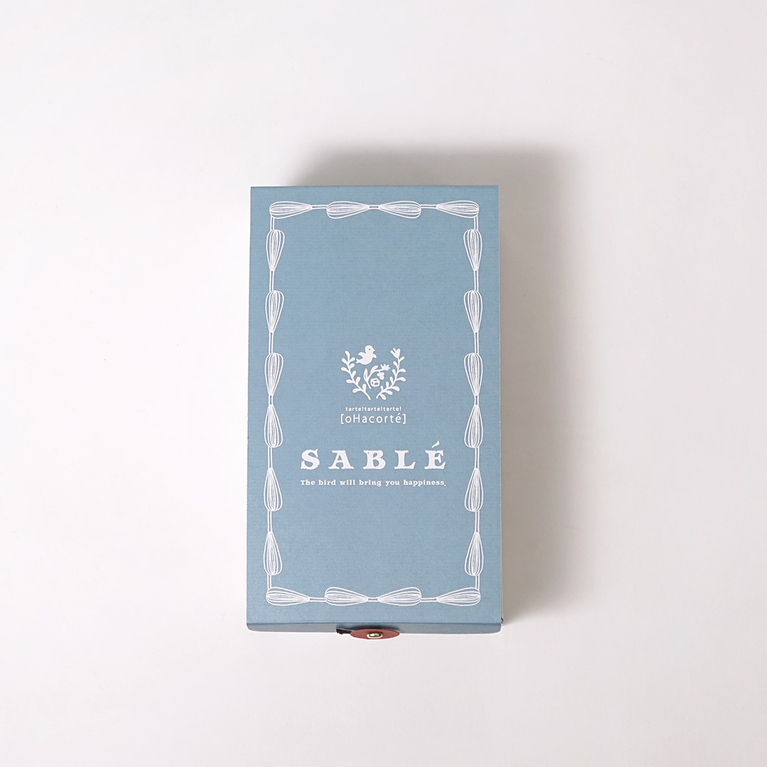 サブレはブランドモチーフである、可愛らしい「青い鳥」の形をしています。タルト生地をそのままサブレにしているそうで、こだわりのサクサク生地にバターの香りとやさしい甘さが口いっぱいに広がる逸品です。