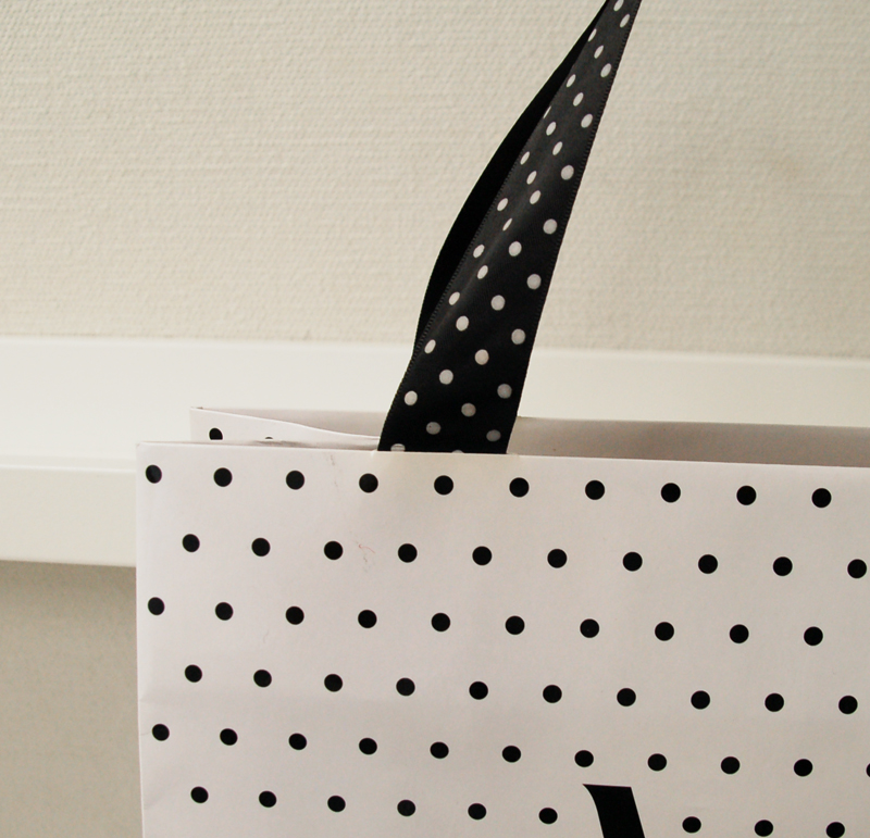 ドットがかわいいショップ袋2012年09月11日 こんにちは、ベリービーの辻です。 今日はドットがかわいいショップ袋をご紹介します。 ハンドルはサテンリボンにドットをプリント。 デザインを損なわないよう、竪穴式の取り付けです。 ボディはグロスPPです。 箔押しやエンボスはなく、1色の印刷です。 仕様もデザインもとってもシンプルですが ハンドルの長さやドットの大きさ、ピッチに デザインのこだわりを感じます。 すてきなショップ袋ですね!!