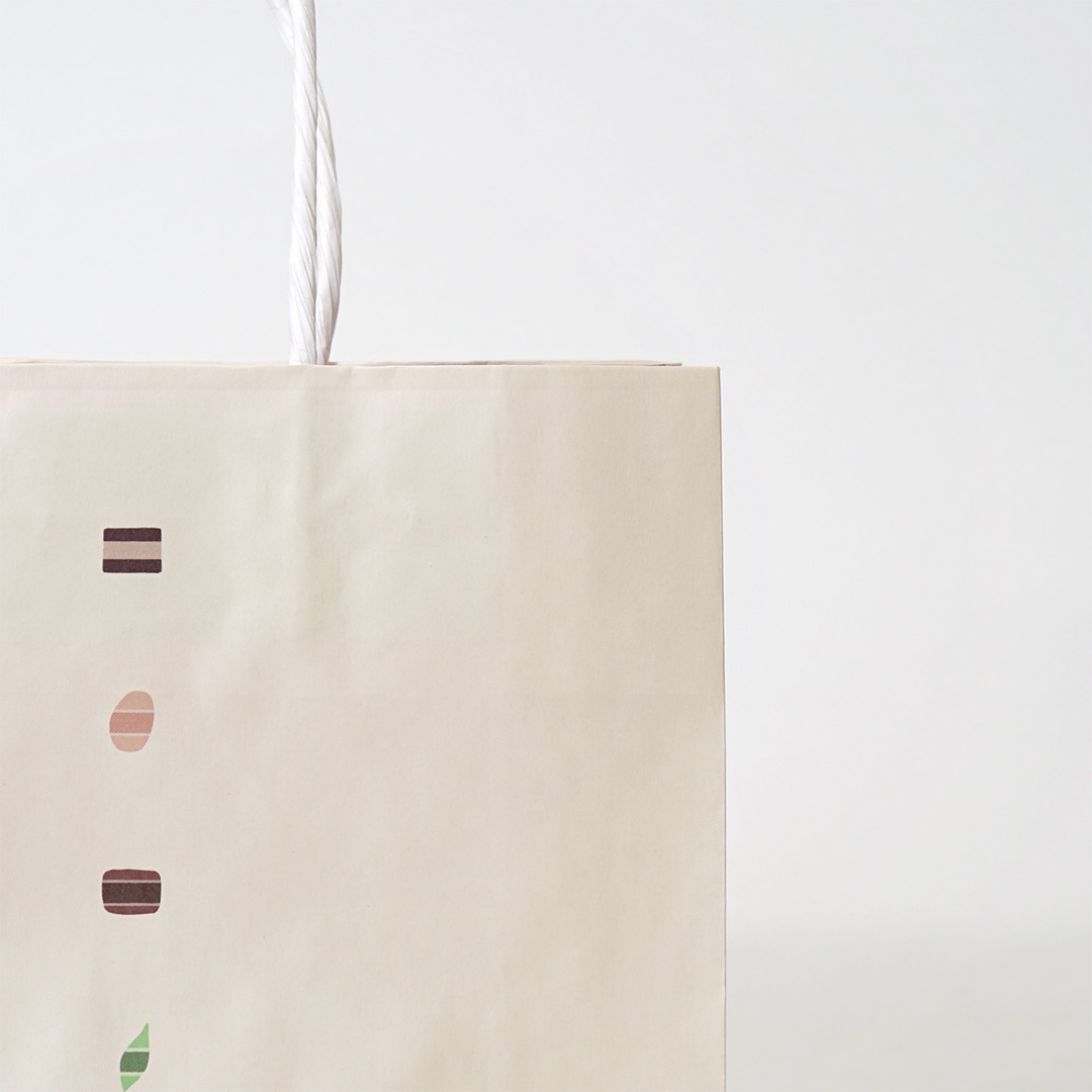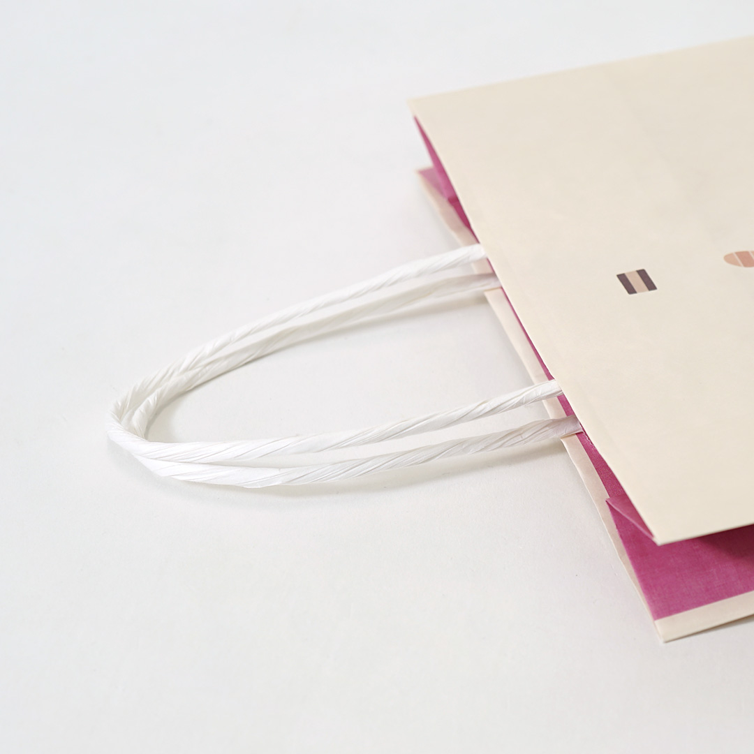 ホワイトカラーの紙紐は、紙袋全体に程よい抜け感を与え、デザインと見事に調和していますね。