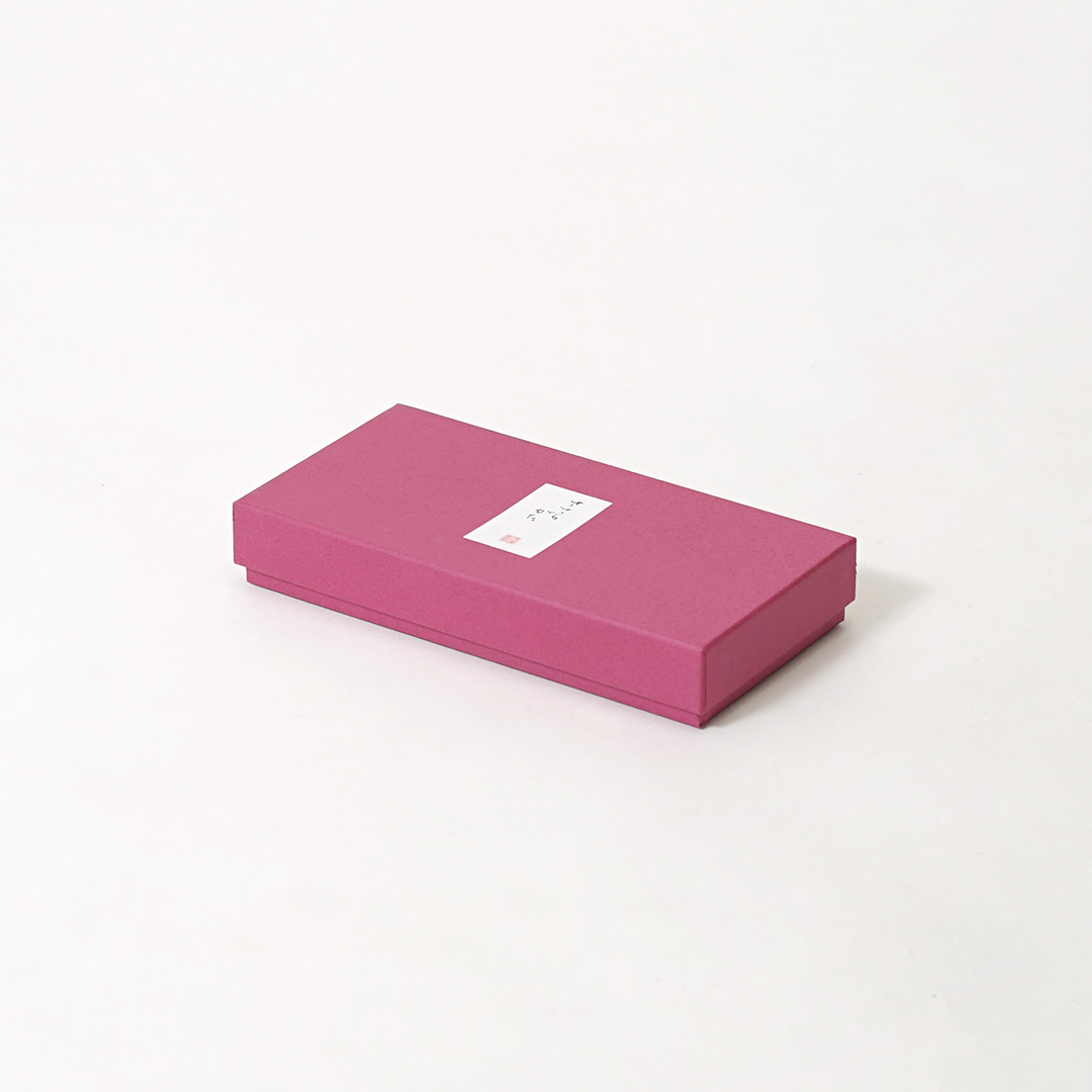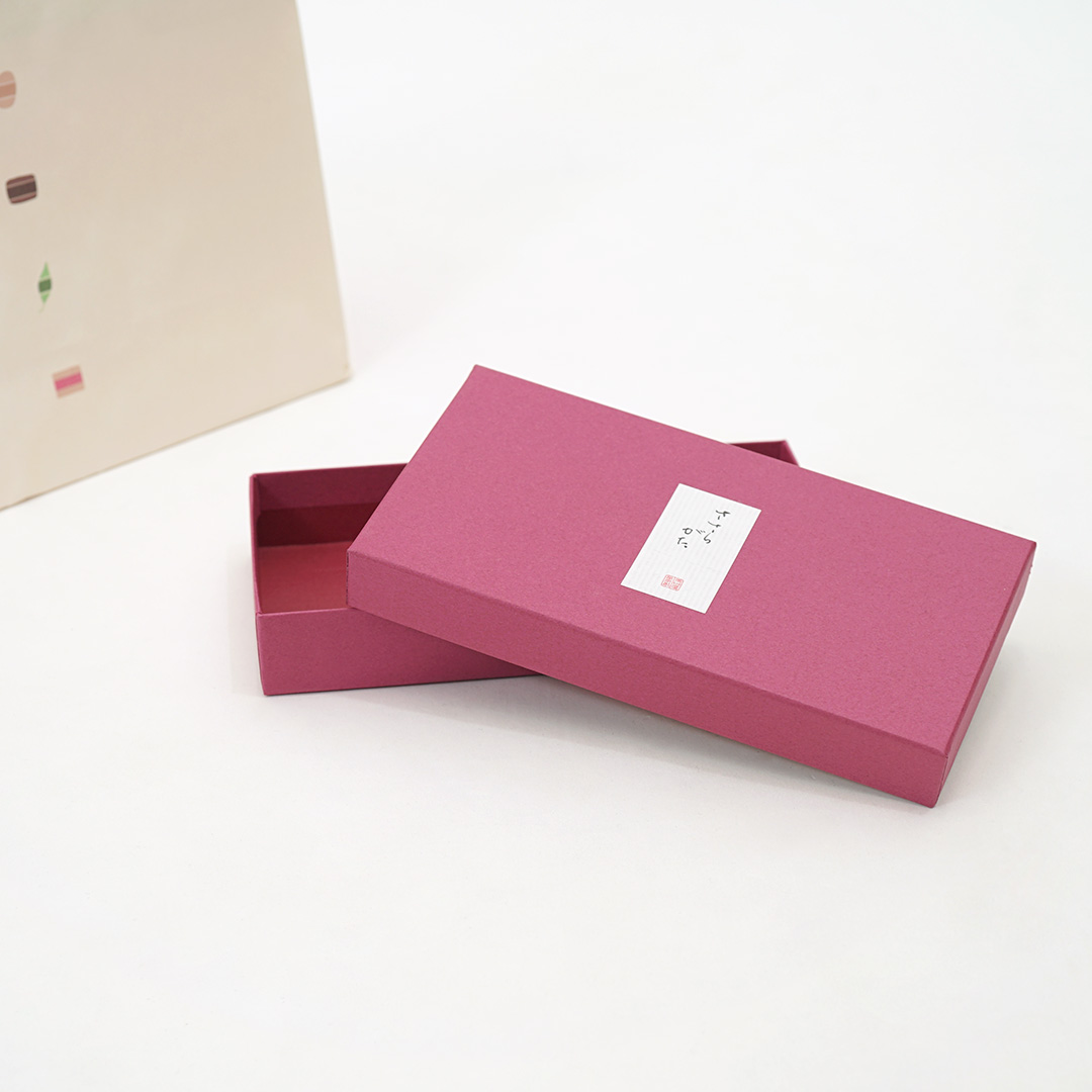 こっくりとしたピンクカラーに商品タグが上品に配置されており、和菓子にぴったりの上質で高級な印象を与えます。