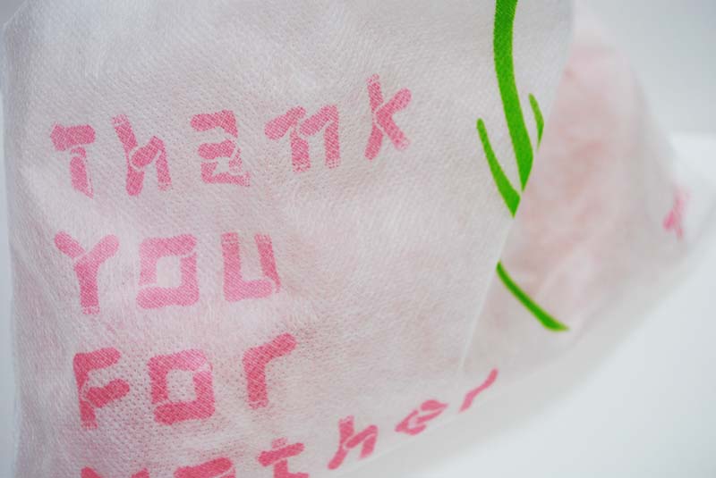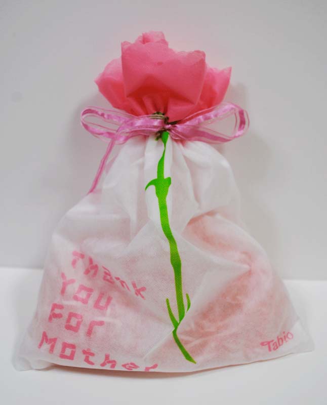 ちなみにこれは、母の日に向けて、靴下屋さんがギフト用に作った巾着です。