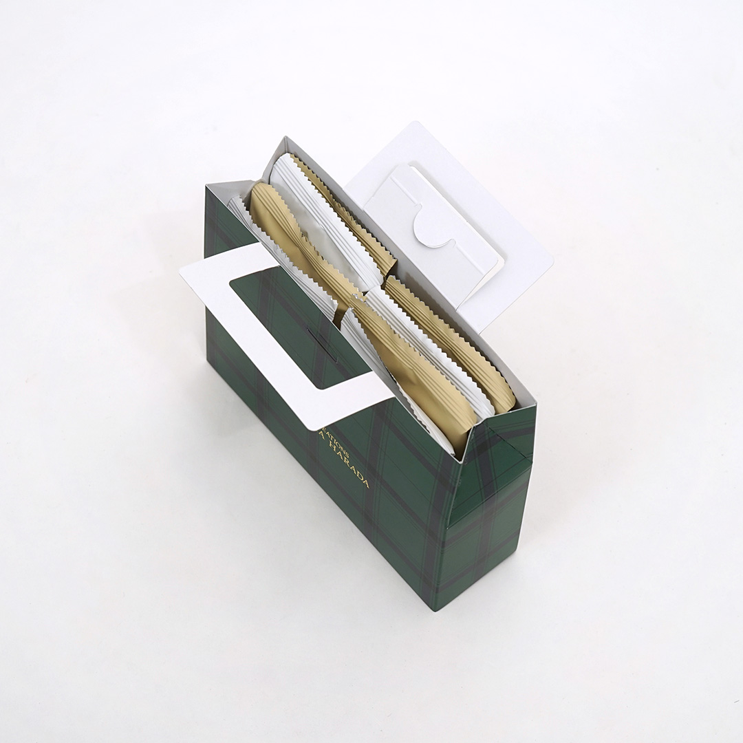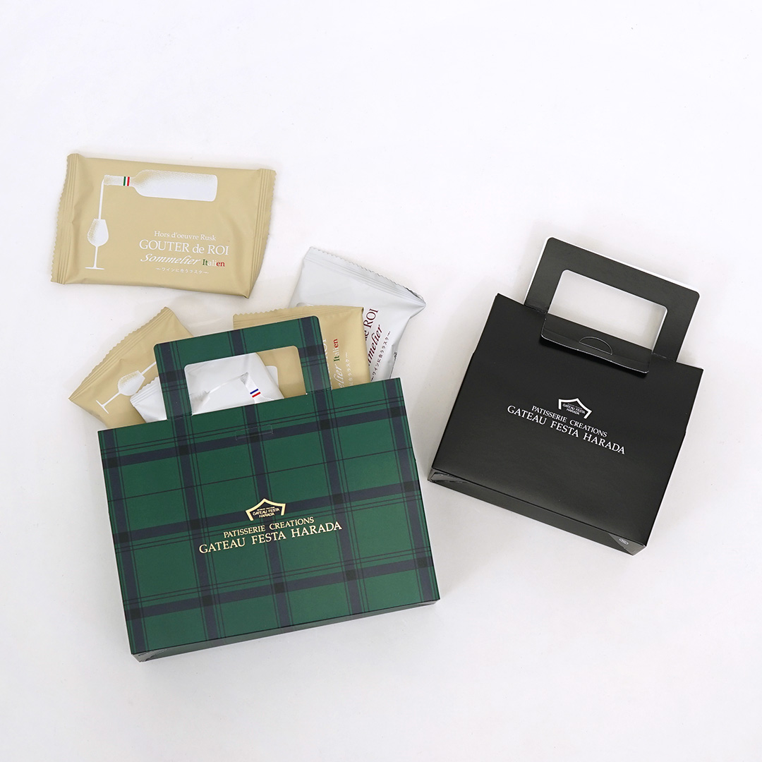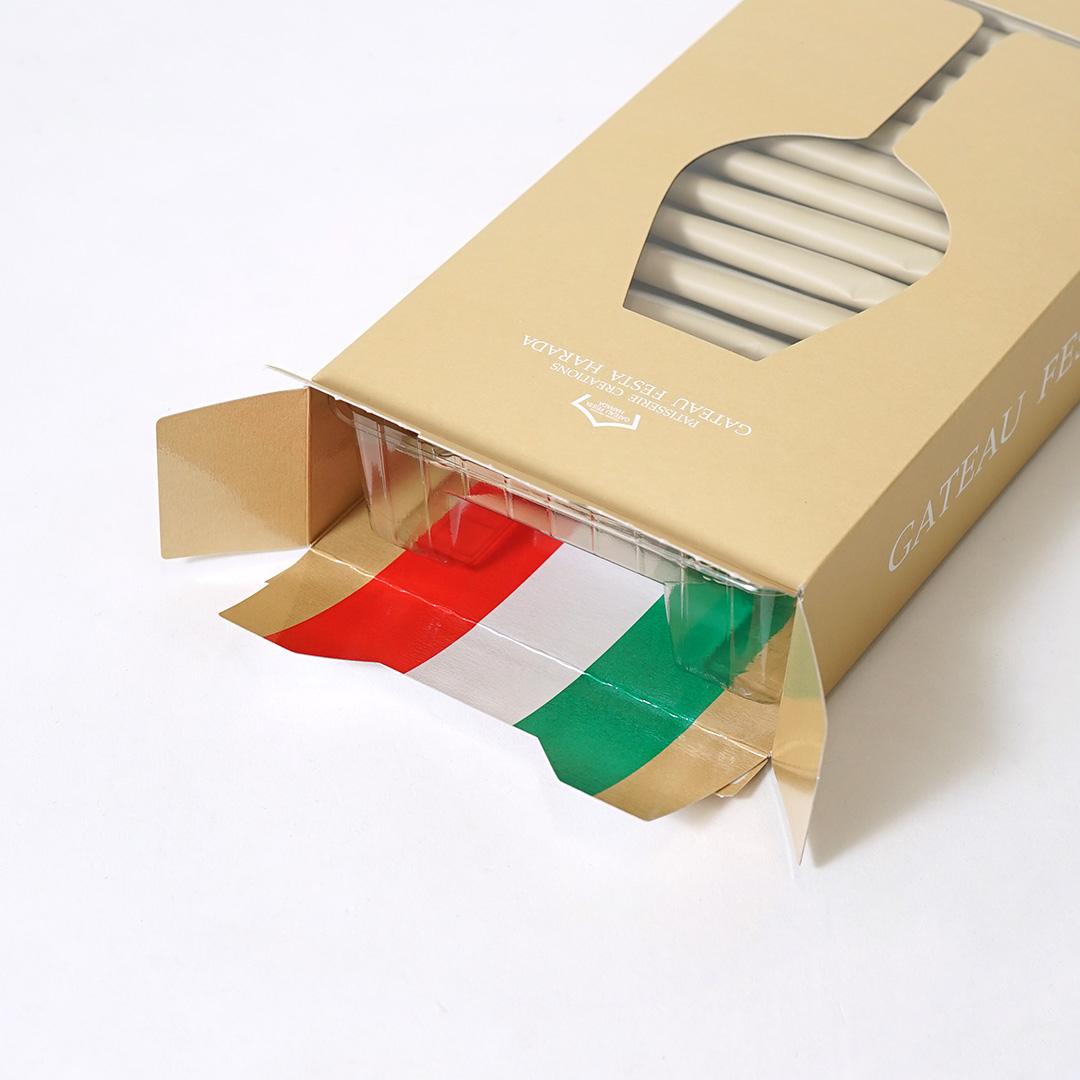 ボックスにそのまま取っ手がついているため、紙袋なしでも手渡しでき、過剰包装を避ける環境に優しいポイントも兼ね備えています。