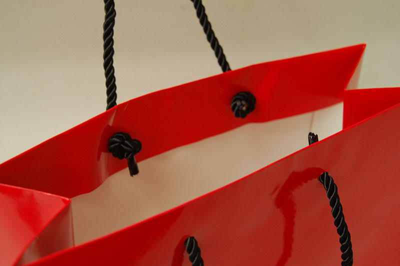 ヴィヴィットな「赤」が目をひく紙袋!2012年10月25日 こんにちはベリービーの芦谷です。 今日はとっても「赤」が際立つ紙袋をご紹介いたします。 インパクトのある赤と黒いツイストロープのコントラストが素敵です。 正面には浮き出しのロゴマークがデザインされています。 高級感ある光沢のツイストロープが紙袋を引き締めていますね!!