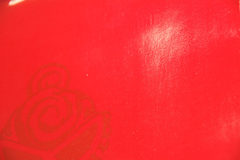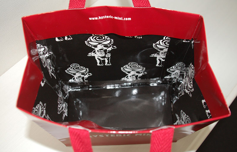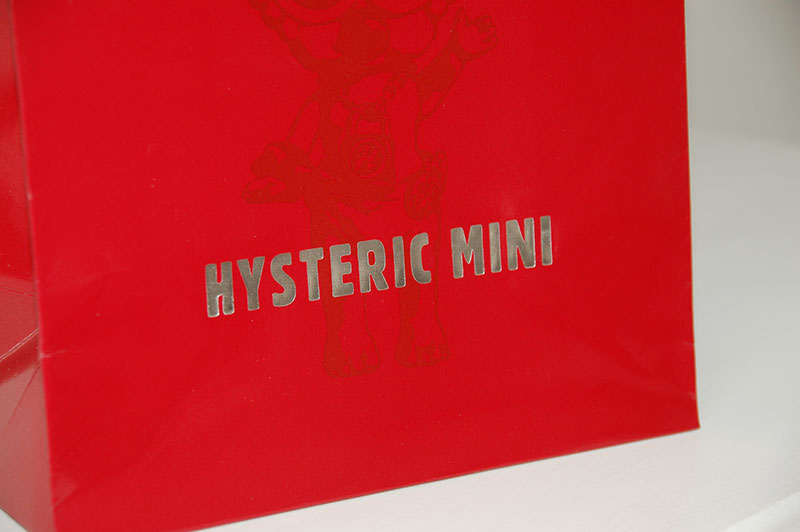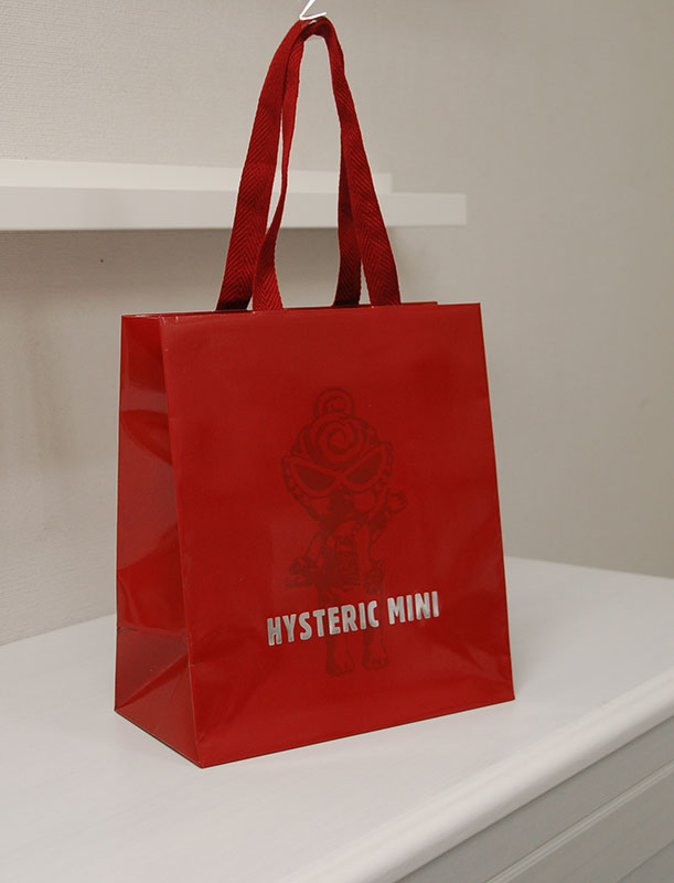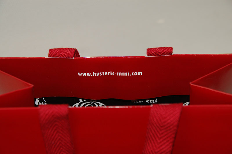 真っ赤がキュートでかっこいい紙袋2012年11月01日 こんにちはベリービーの芦谷です。 今日はフェラーリのような赤が素敵な紙袋をご紹介します。 紙袋のベースもハンドルも真っ赤です!! 赤の中に彩度の違う赤でイラストを入れて、 ロゴマークは赤によく似合ったシルバー箔押しです。 紙袋の表面には布目調のエンボスが施されているので質感があります。 赤い平紐は縦穴で取り付けられたいるのでスッキリです。 口折りにはURLがプリントされています。 内側には外の赤と対照的にモノトーンでキュートなイラストがプリントされています。