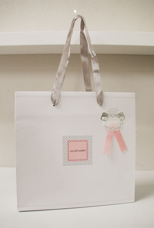 上品でかわいらしいショップ袋2012年11月02日 こんばんは、ベリービー辻です。 今日は上品でかわいらしいショップ袋の ご紹介です。 お菓子のパッケージに使われそうな シルバーリボンです。 ロゴ入りシールも素敵!! ピンクとシルバーをうまく使った とても素敵なショップ袋ですね!