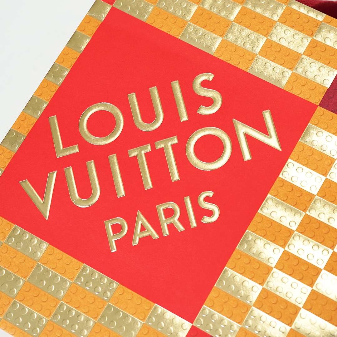 こちらは、昨年ホリデーシーズンに有名おもちゃブロックメーカーとハイブランドがコラボレーションした際の限定紙袋です。