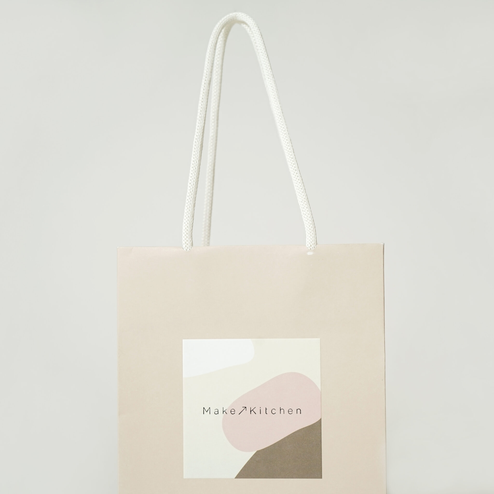 ロゴ背景はホワイトやピンク、アイボリー、ブラウンといったくすみカラーを組み合わせたデザインで、