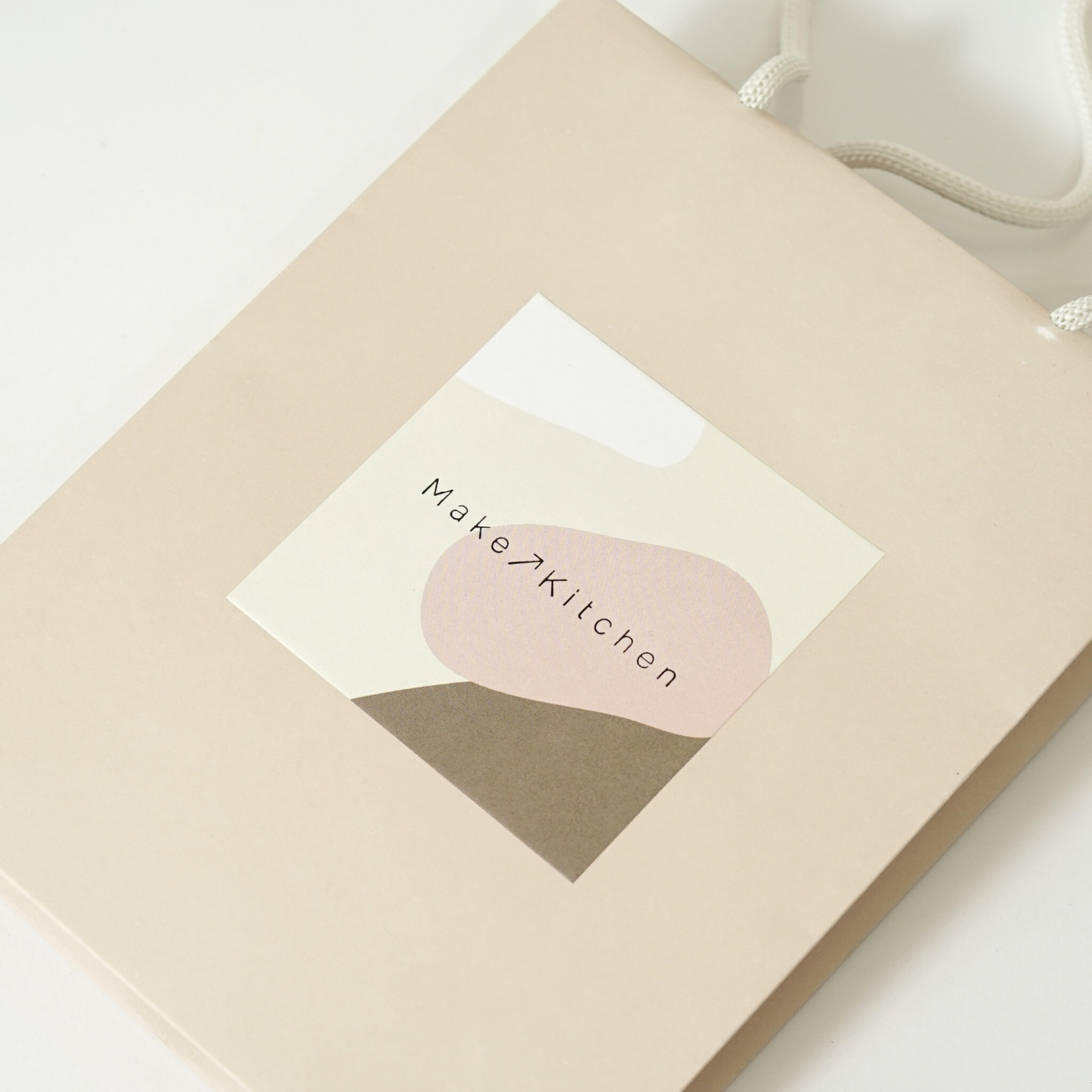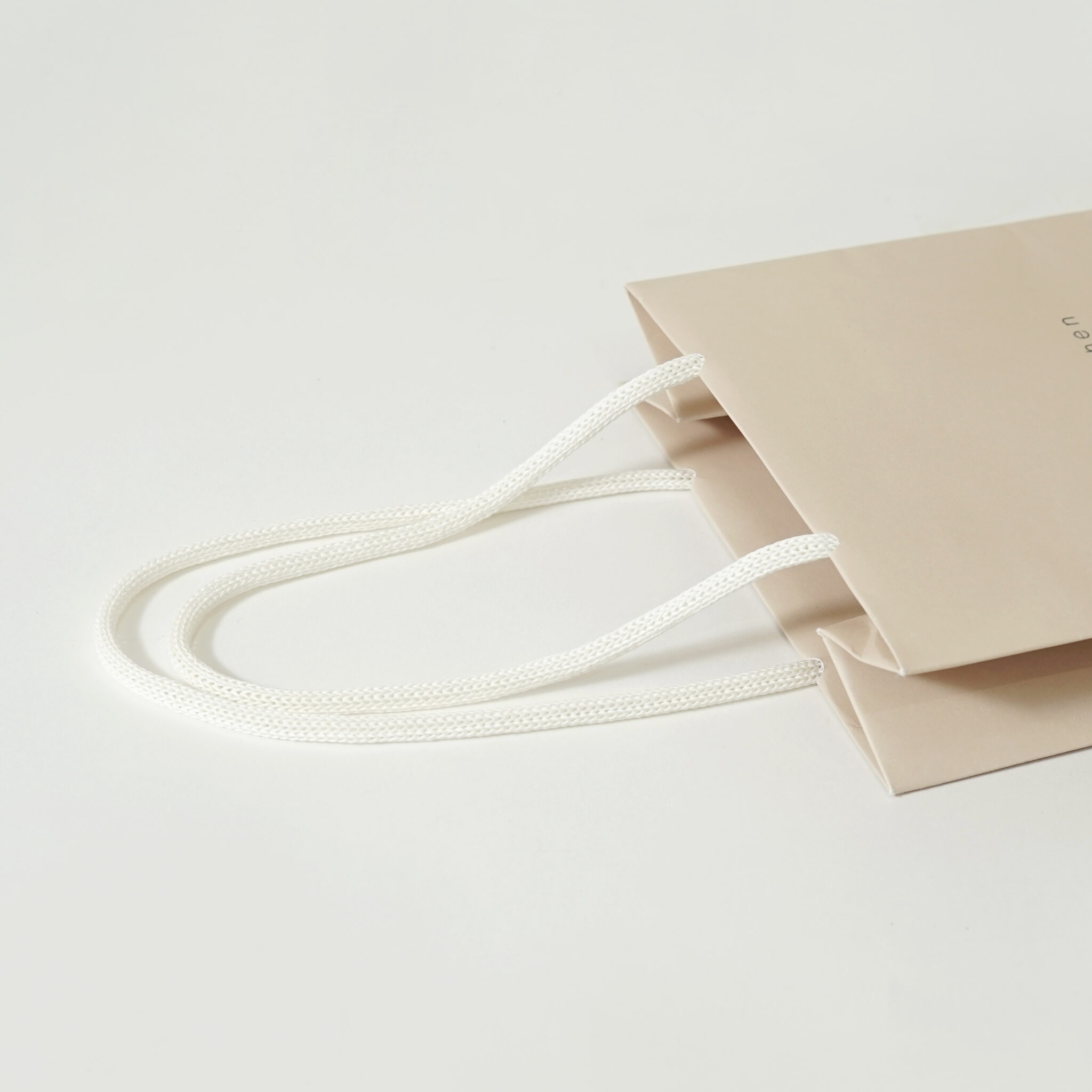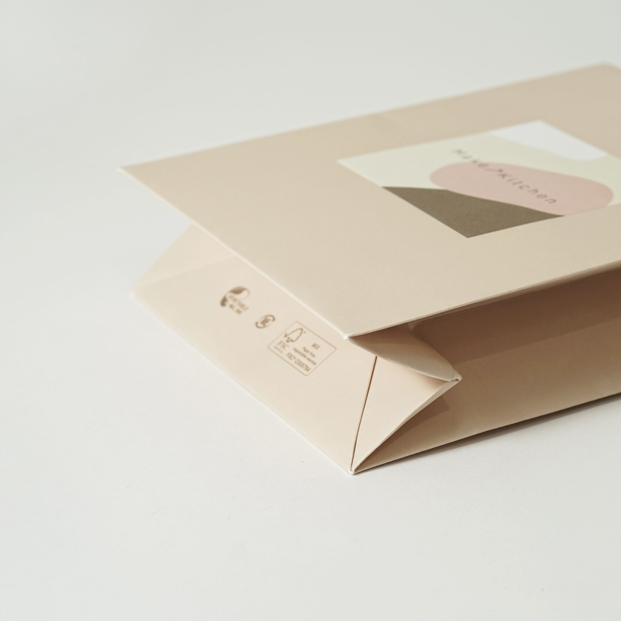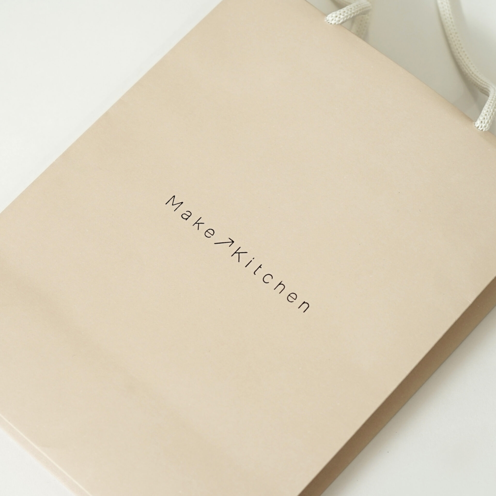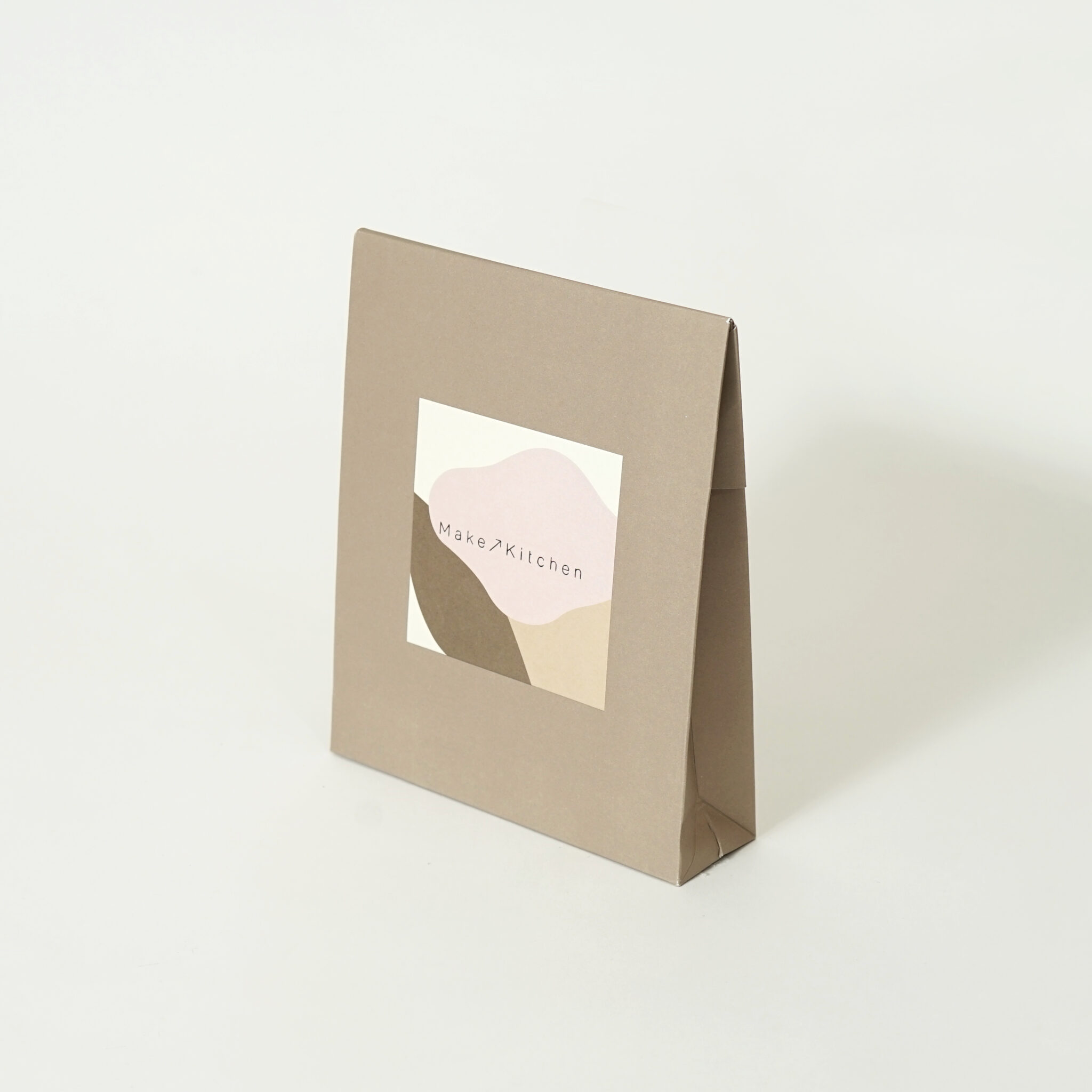 全面に温かみのあるベージュ色で印刷されており、正面中央にはブランドロゴが配置されています。