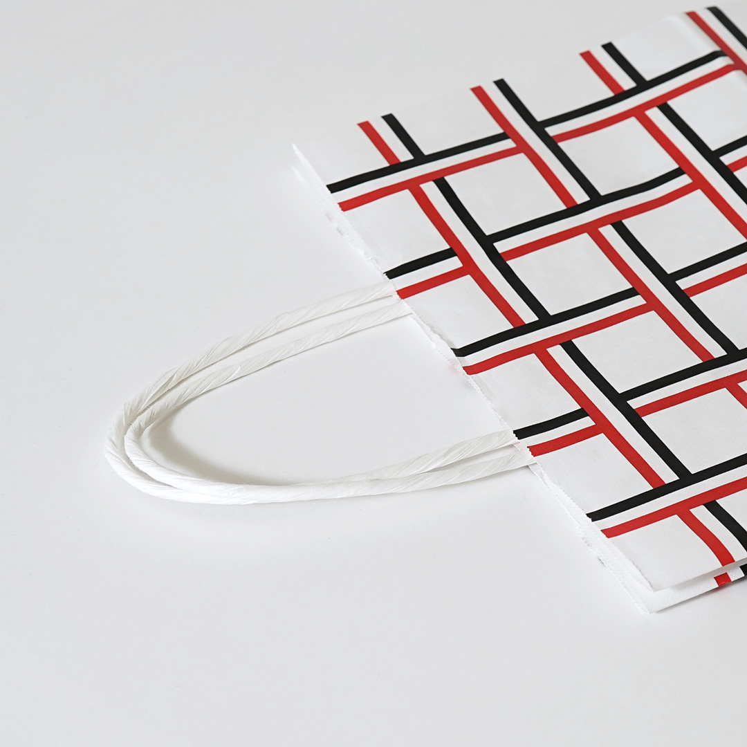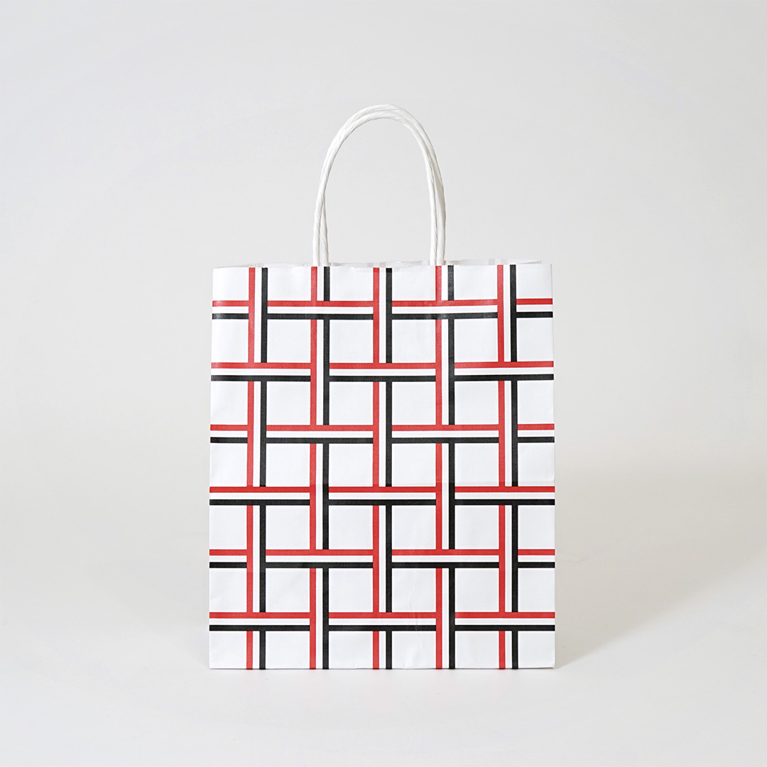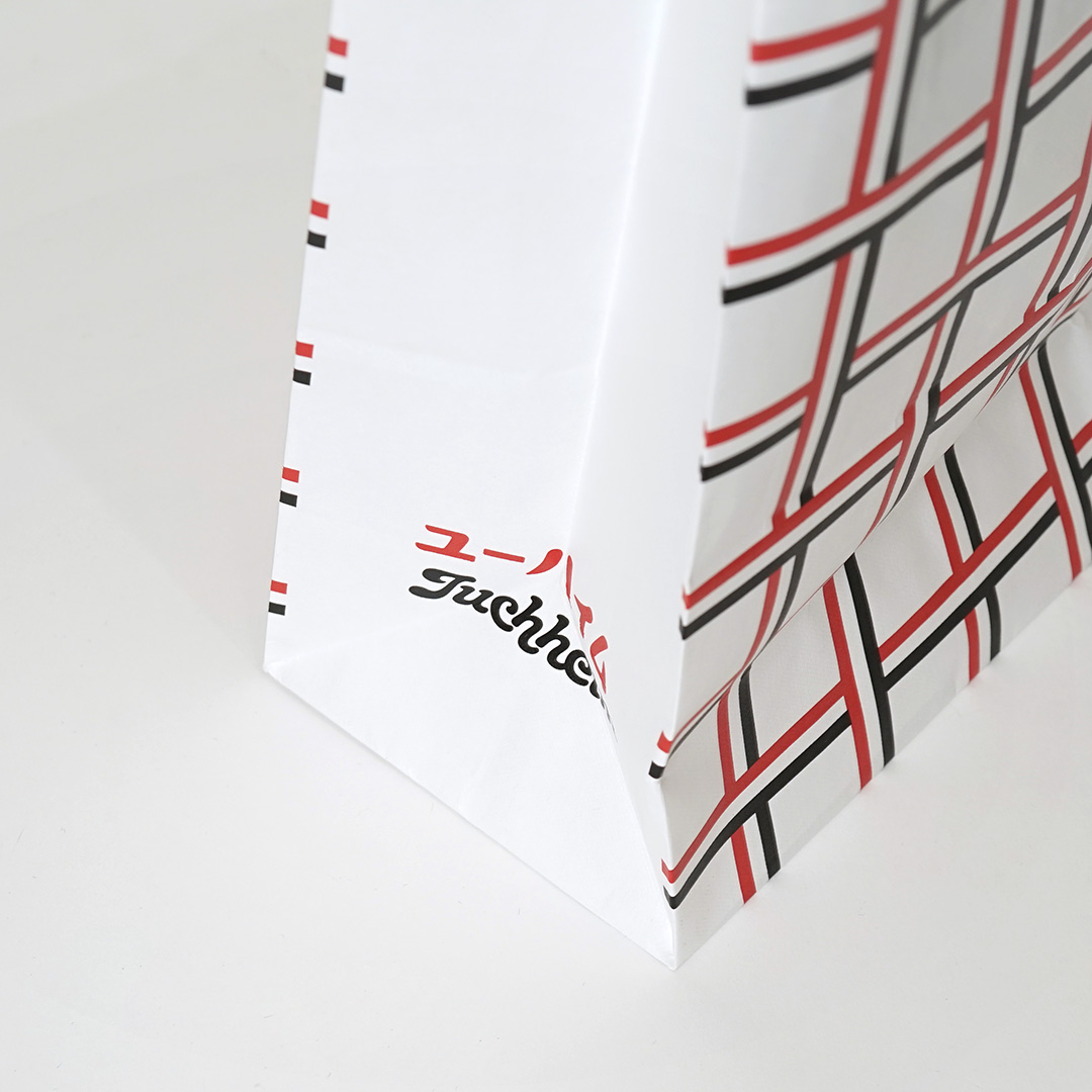 ロゴは紙袋の正面ではなく、マチ部分にさりげなく配置されています。