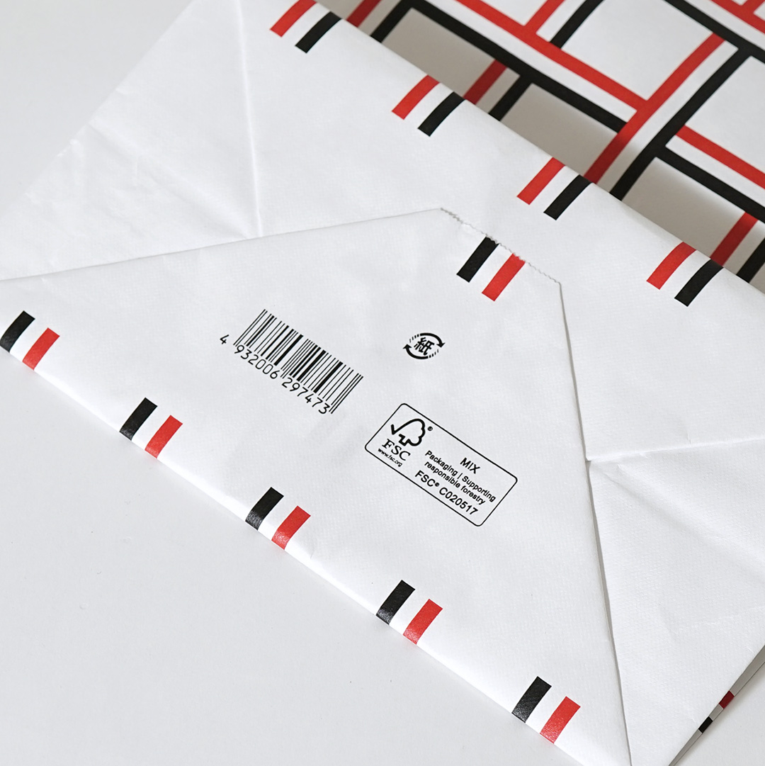 紙袋の底面には、森林管理協議会(FSC)認証マークが記されていて、ハンドルも含めて全て紙製となっています。