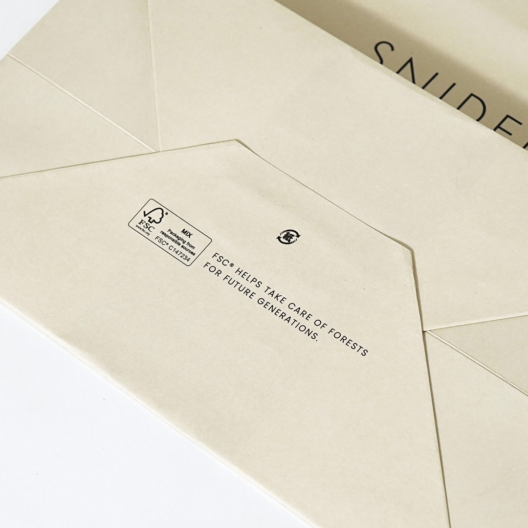 ナチュラルな色合いと、FSCマークやコットンハンドルといったサステナブルな要素が融合した、魅力的な紙袋でしたね。ブランドのコンセプトを細部にまで落とし込んだデザインは、お客様に深い印象を与え、ブランド価値を高めること間違いなしです!