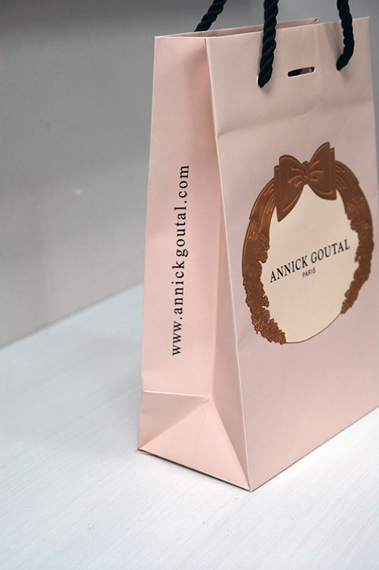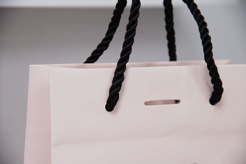 おしゃれでリッチな紙袋2012年11月12日 こんにちはベリービーの芦谷です。 今日はオシャレでリッチ感たっぷりの紙袋をご紹介します。 かわいいベビーピンクにゴージャスな箔押しの紙袋です。 箔押しは浮きだし手彫り版の高級感たっぷりです。 高級感の中にもプロモーションを忘れず、 しっかりURLをアピールしています。 手提げ紐は女性に人気のあるツイストロープ。 ピンクと黒のコントラストがセクシーです。 底を見ると、ヨーロッパでよく見かけるタイプの作り方です。 なんだか、素敵に見えてしまいます。