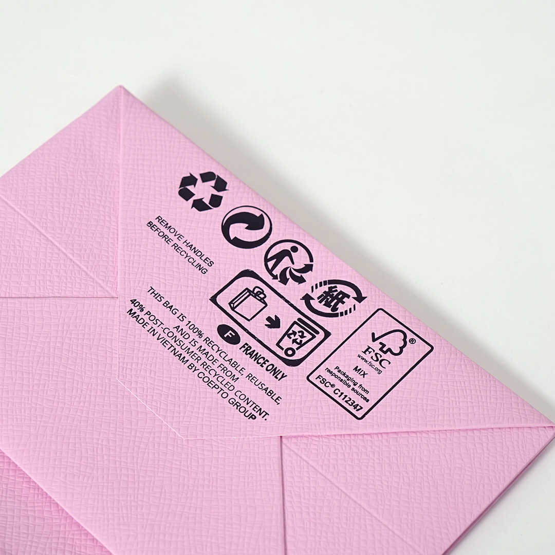 紙袋の全体には、天然石のような不規則なエンボス加工(紙に凹凸をつける加工)が施されています。