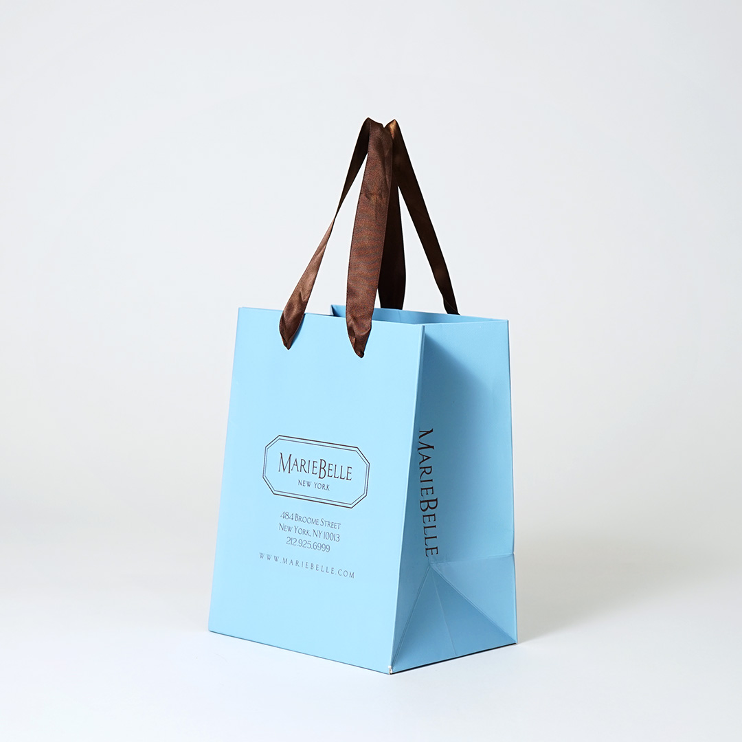 ベリービーでは、ハンドル部分にブランド名やマークを印字したオリジナルリボンの制作もご提案可能です。イベント用など特別な紙袋をご検討でしたら、ぜひリボンページで詳細をご確認ください。 ※現在、ベリービーではリボンへの印字加工が必須となりますので、あらかじめご了承ください。