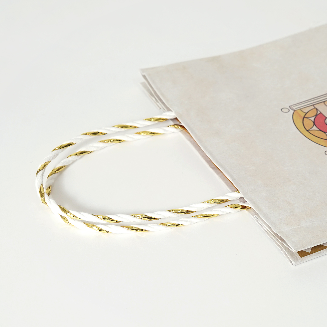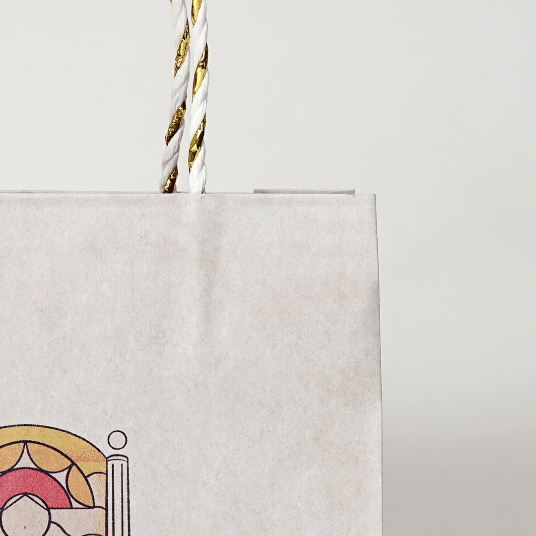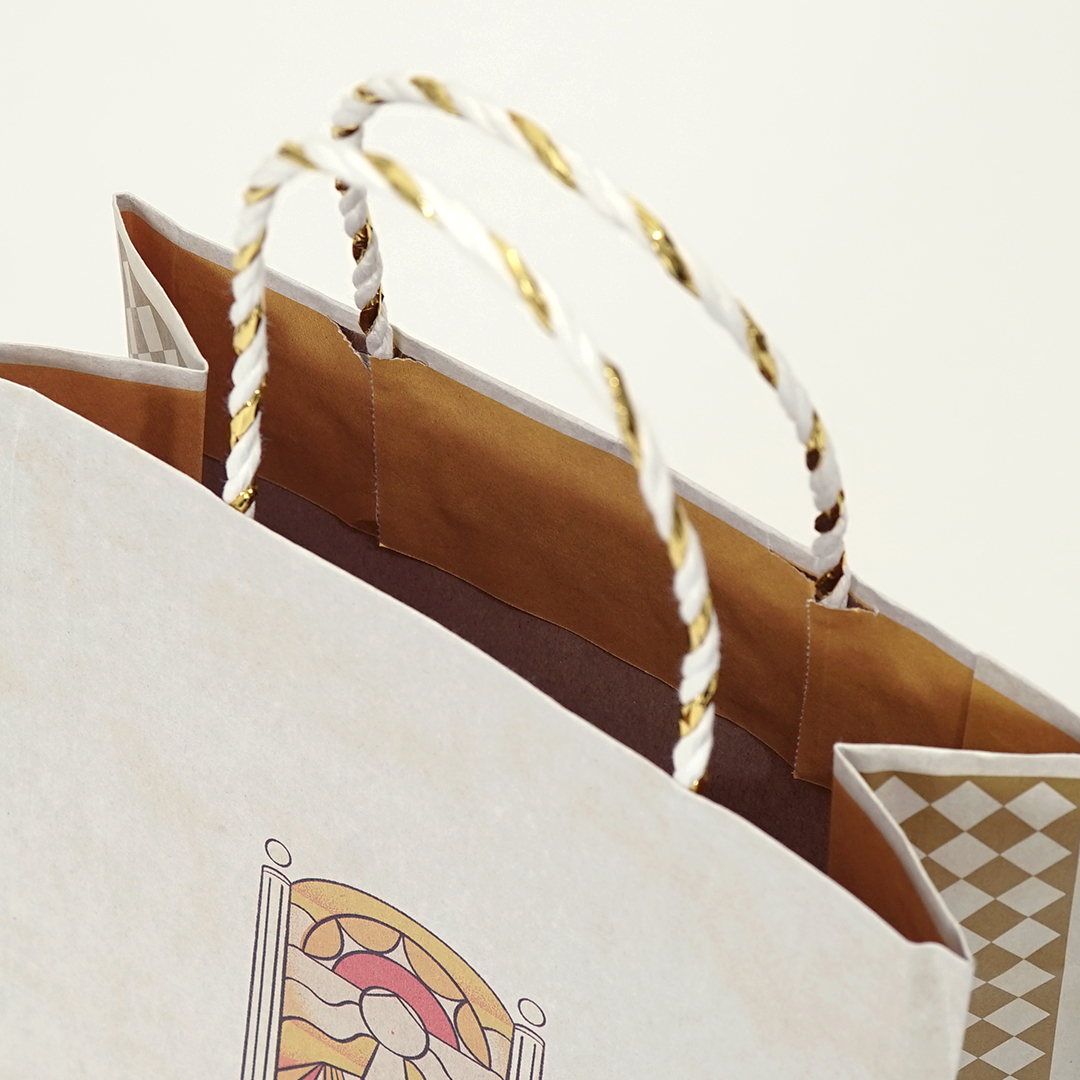 これはさりげない工夫ですが、紙袋全体をとても柔らかく上品な雰囲気に仕上げる効果があります。
