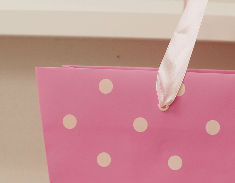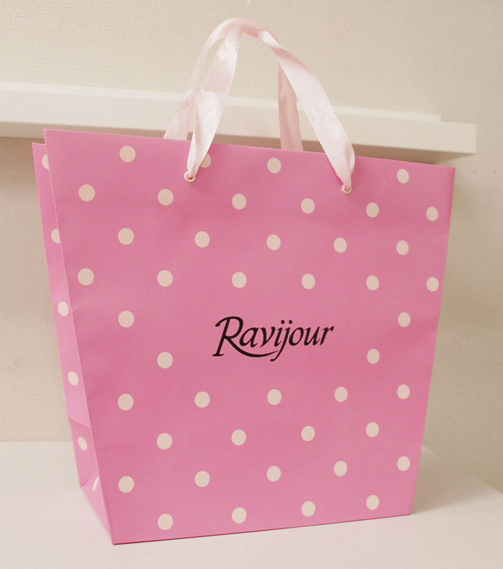 キュートな台形紙袋2012年11月24日 こんにちはベリービーの芦谷です。 今日はとってもキュートな台形の紙袋をご紹介します。 水玉模様のとってもかわいい紙袋です。 手提げ紐はサテンリボン。ハトメ付きです。 底ボールにはかわいくURLがプリントされています。 なんだかお菓子のようなとってもかわいい紙袋ですね!!