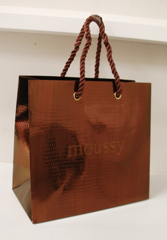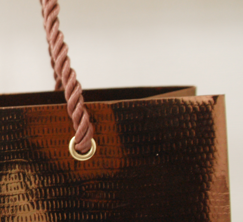 ギラギラ!ワイルドなショップ袋!2012年11月26日 こんばんは、ベリービー辻です。 今日ご紹介するショップ袋は とってもワイルドです! 太めのツイストロープで ワイルド感アップです! そして、なんといっても クロコエンボスです!! これくらいエンボスがしっかり かかっていると 迫力がありますね!!