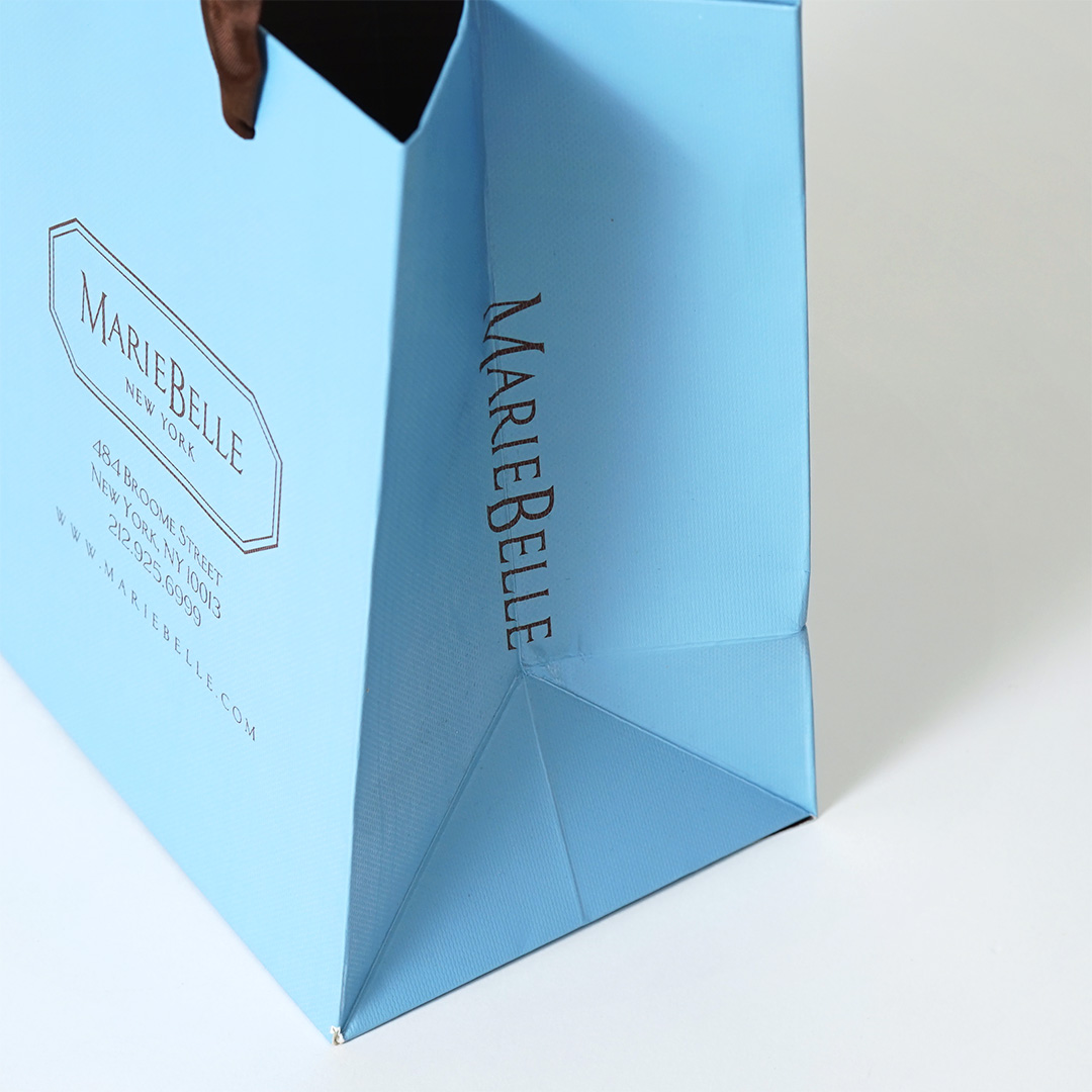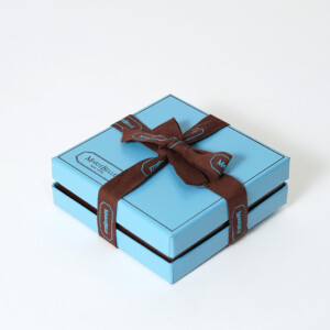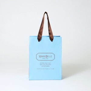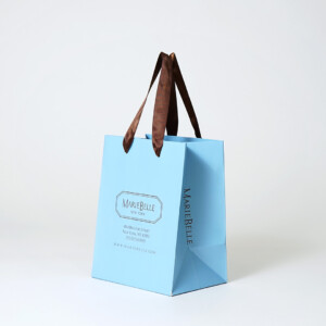 スカイブルーがさわやかなチョコレートショップのショッパー