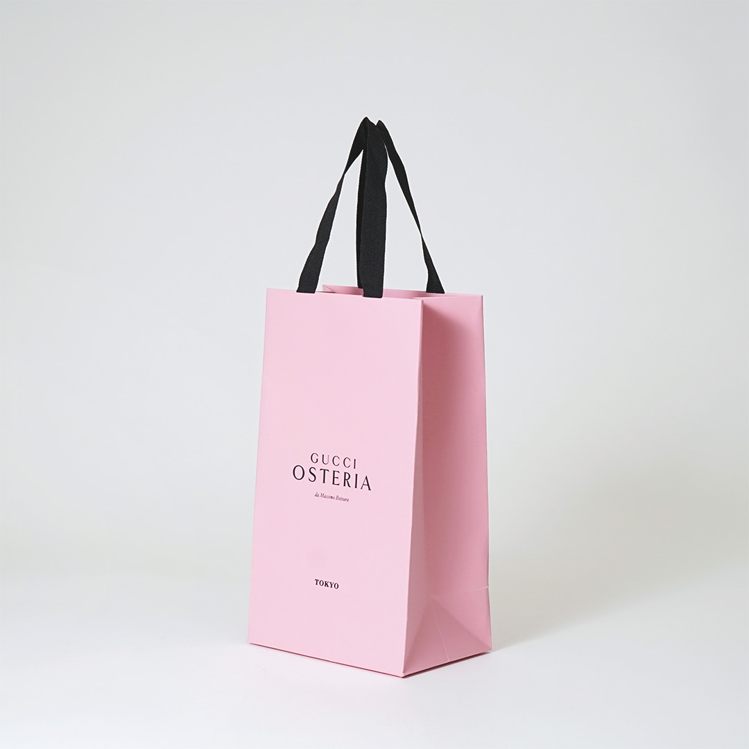 コットンのような質感のリボンをハンドルに使用した、ラグジュアリーブランドが手掛けるイタリアンレストランのオリジナル紙袋