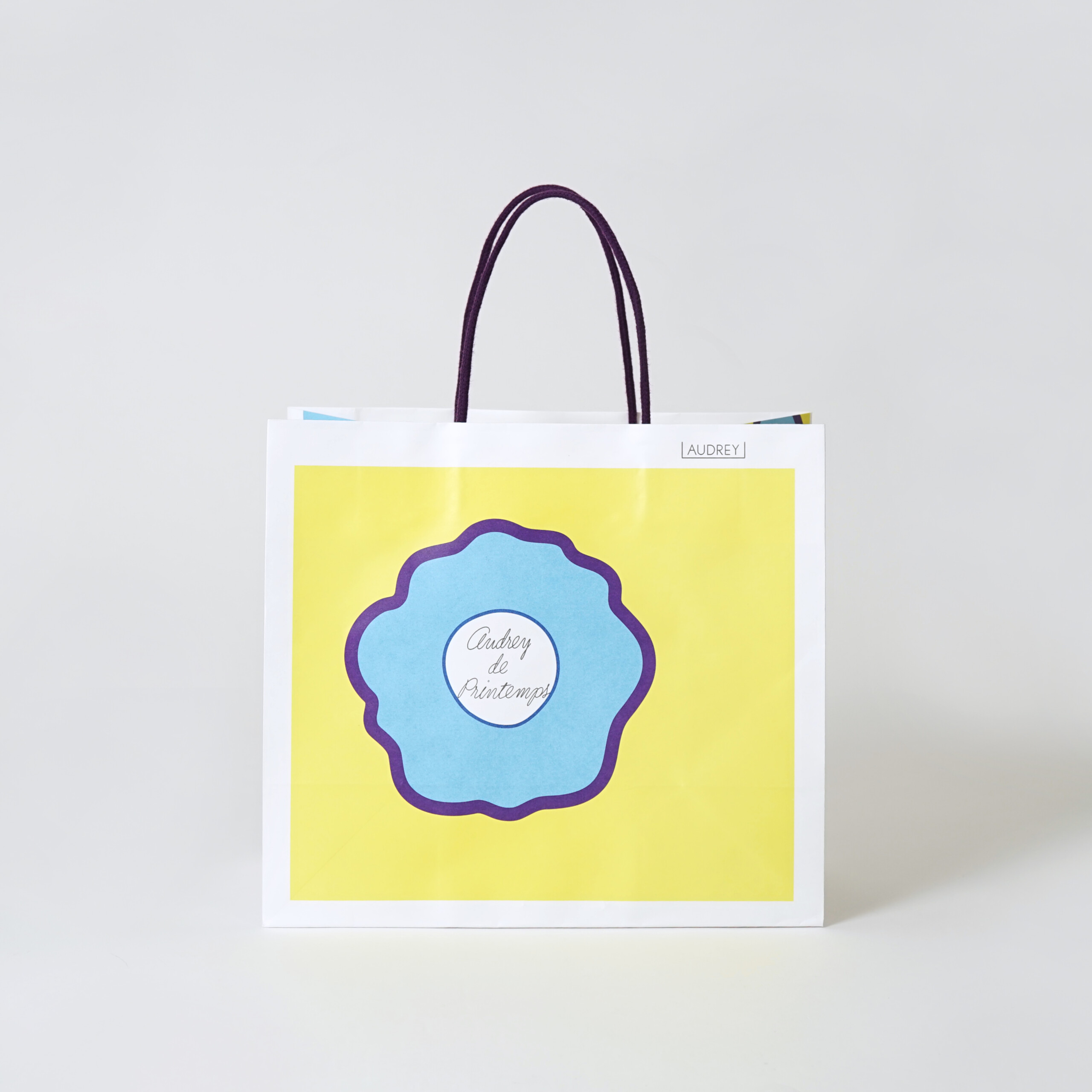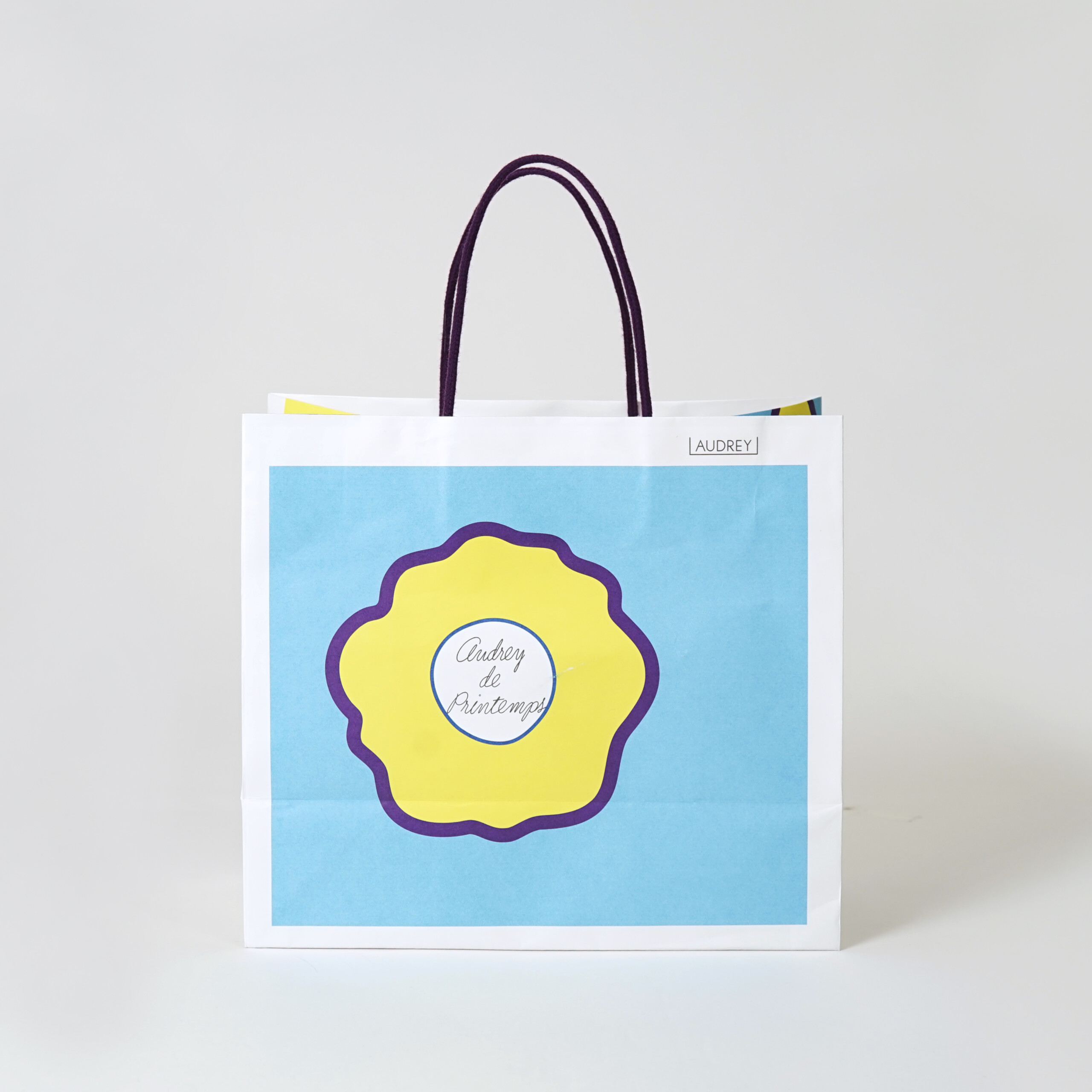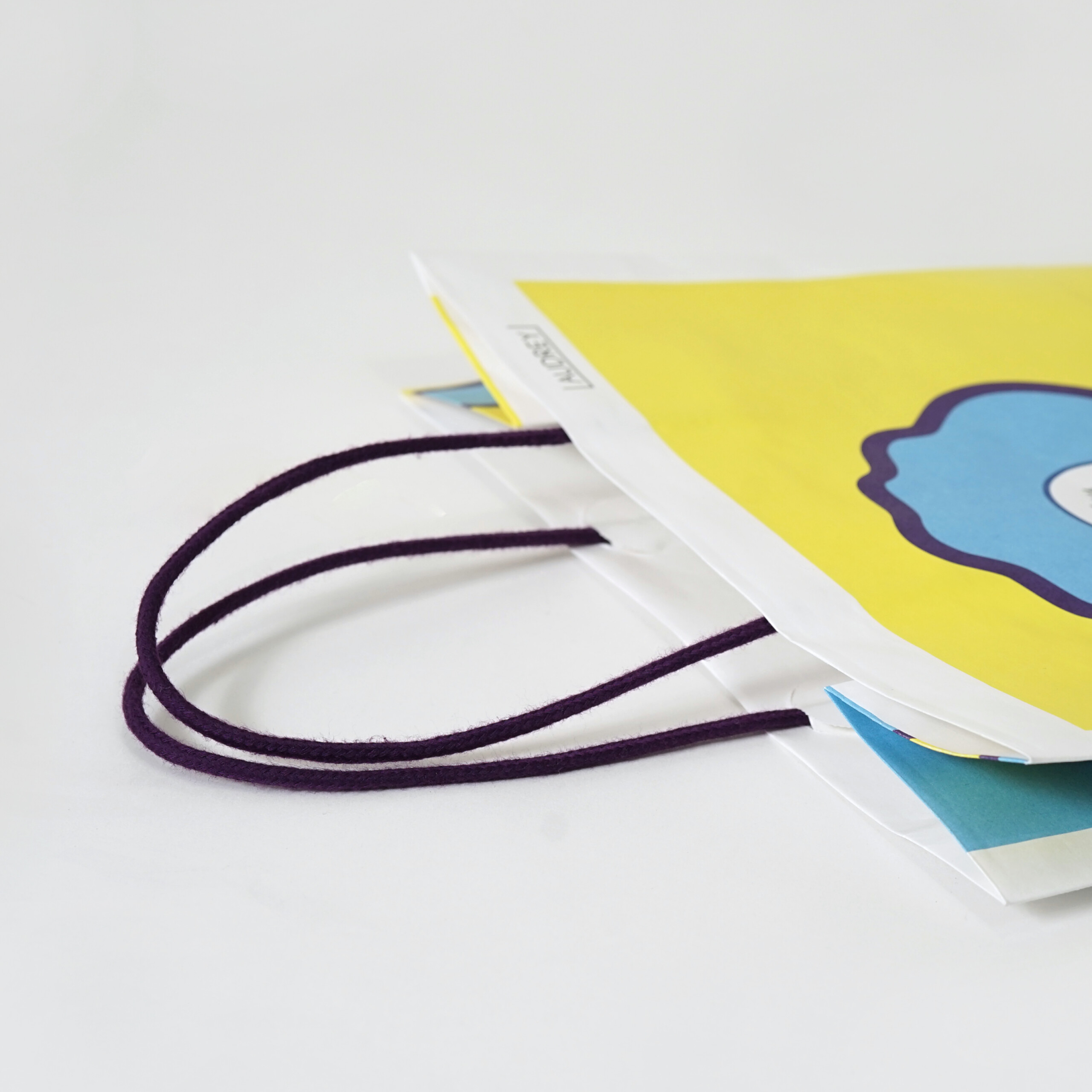 ブランドロゴは紙袋の右上部分に控えめにプリントされています。全面のイラストを際立たせるバランスが絶妙です。