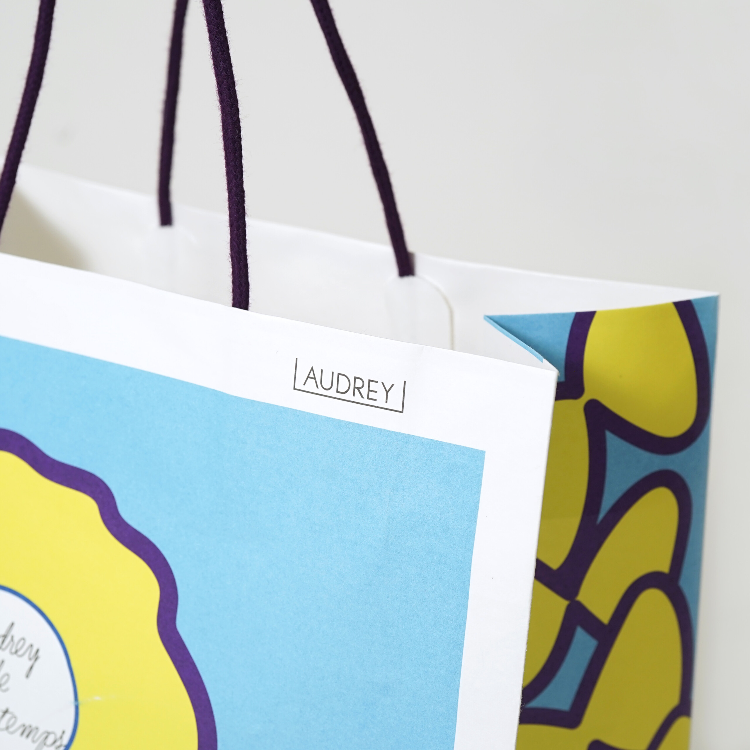 今回ご紹介する紙袋は、ビビッドで軽やかな配色が目に飛び込んでくる、非常に印象的なデザインです。