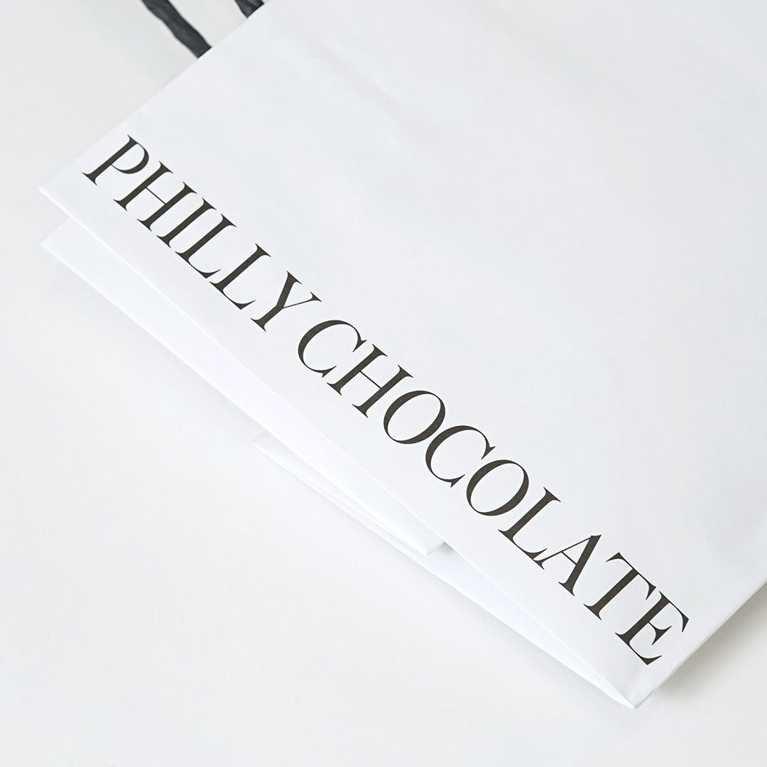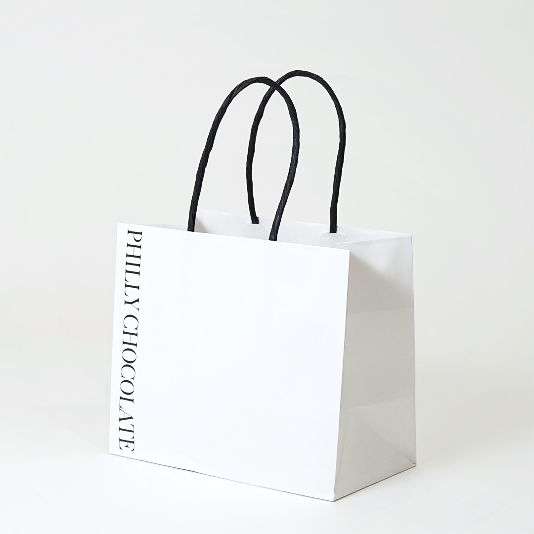 存在感を放つブランドロゴと環境に優しい紙製ハンドル