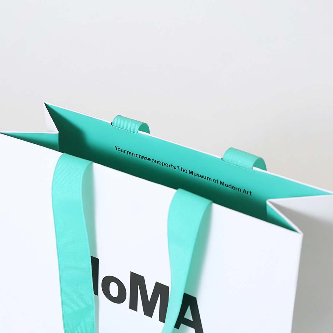 この美術館は、1929年の開館当時、絵画がアートの主流だった時代に、プロダクトデザインやフィルムなどもアートとして捉え、永久収蔵するという革新的なコンセプトを掲げました。その先進的な哲学が、このショッパーのデザインにも色濃く反映されています。