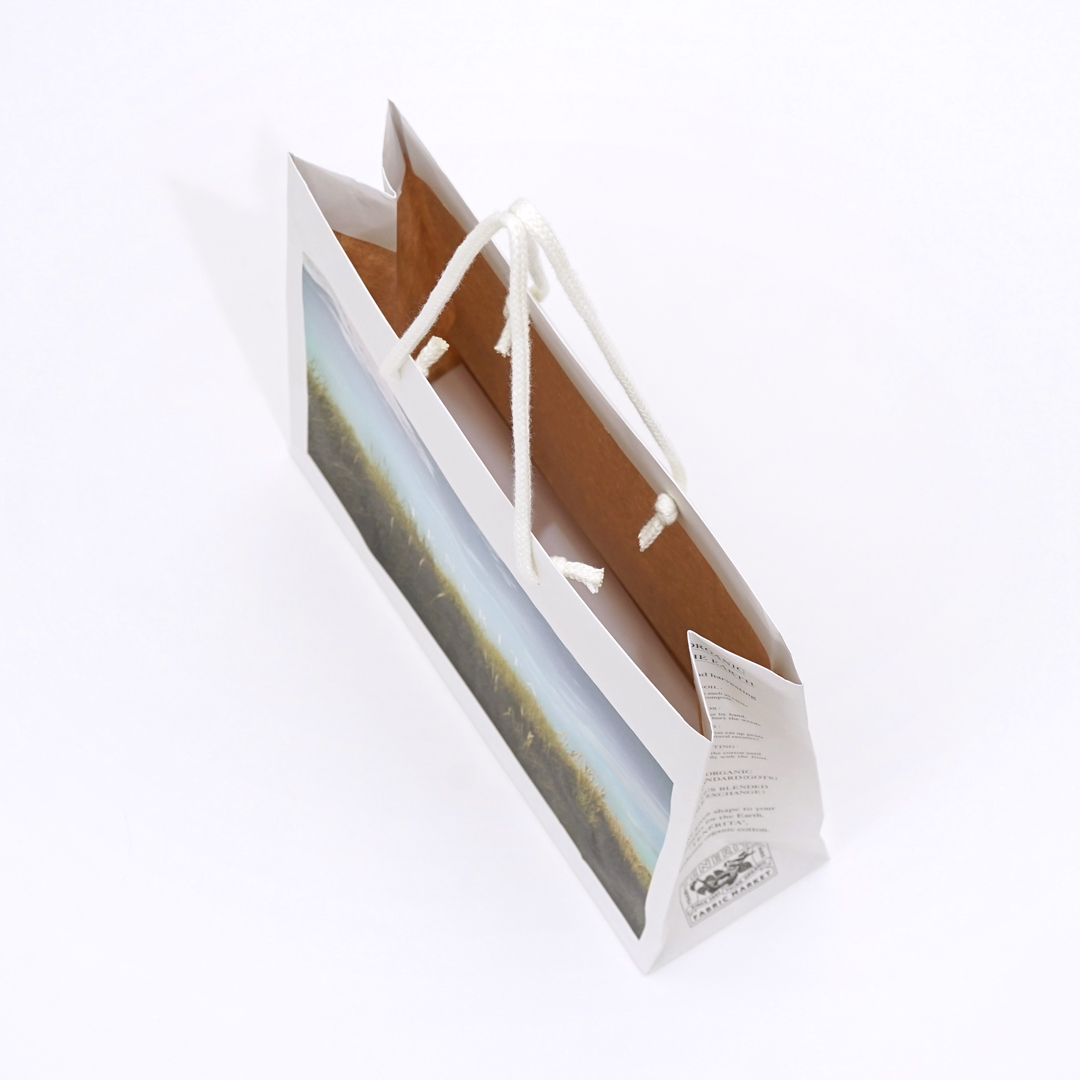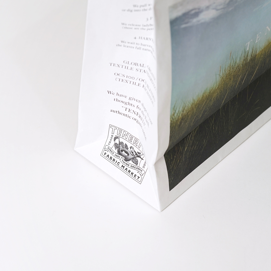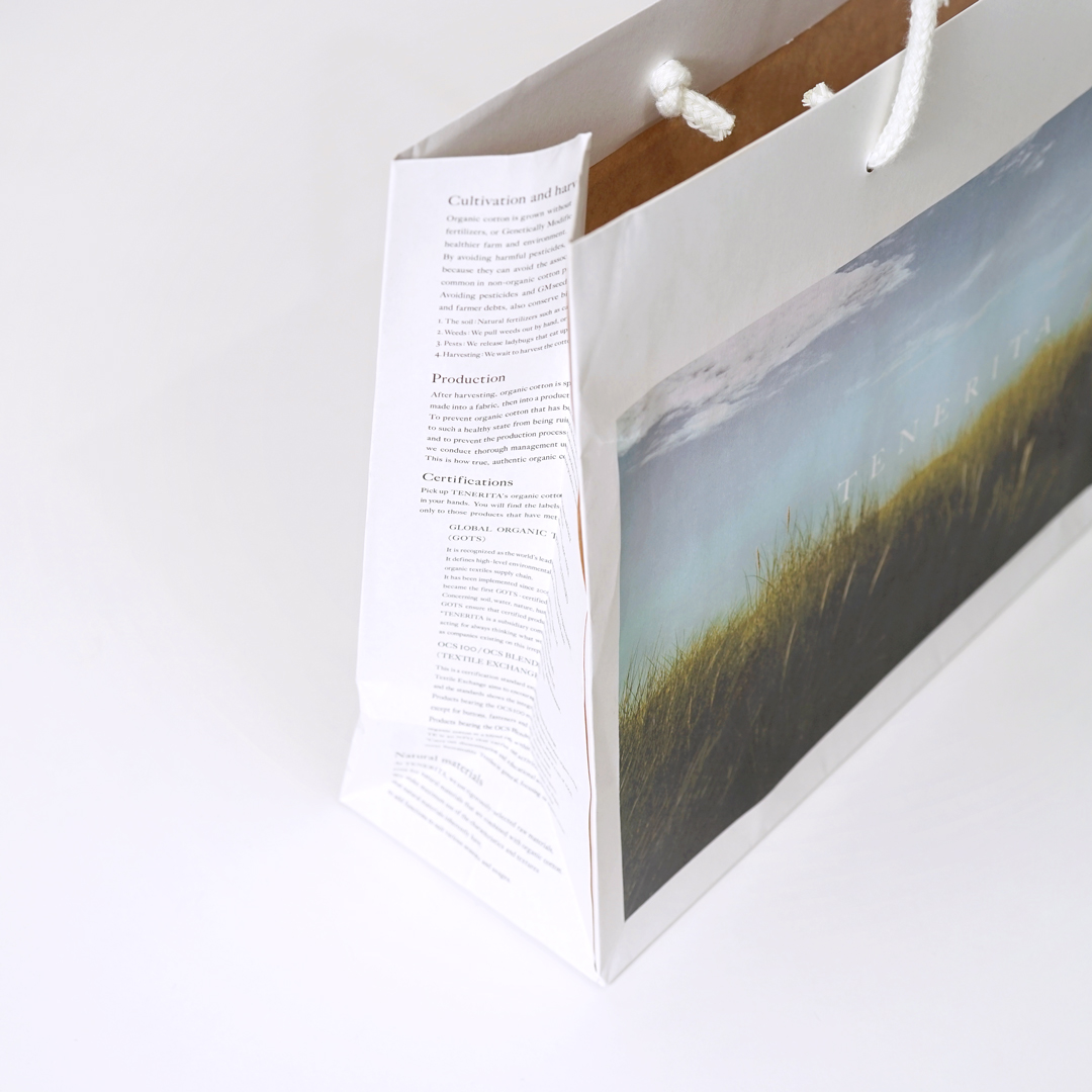 側面は紙袋と同様に、素材やモノづくりへのこだわりがデザインされています。