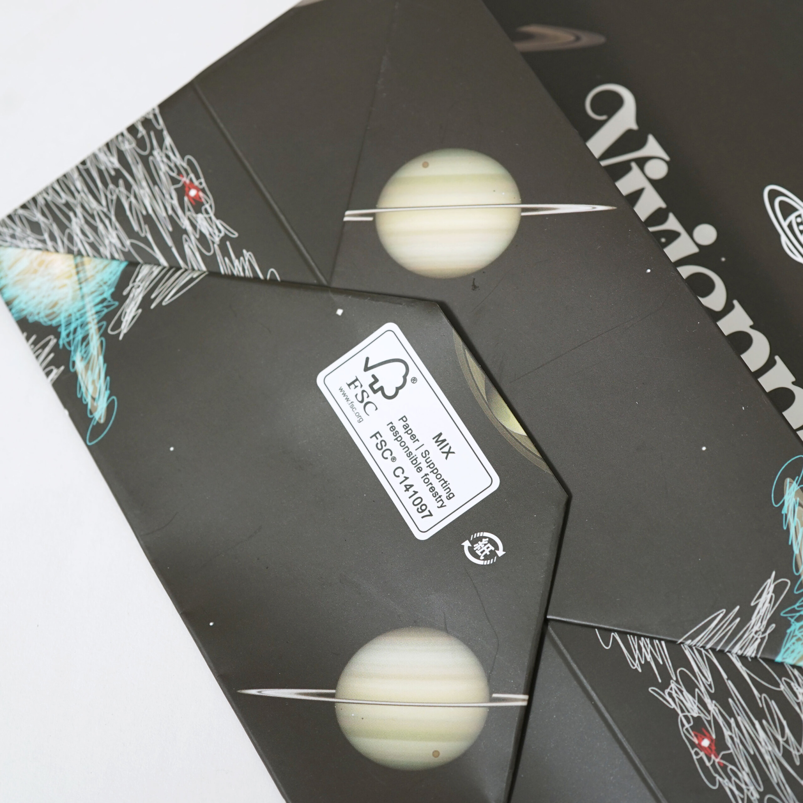 存在感のあるブラックをボディに使用しながらも、ランダムに散りばめられたカラフルな天体イラストがアクセントとなり、ホリデーの華やかさが表現されています。