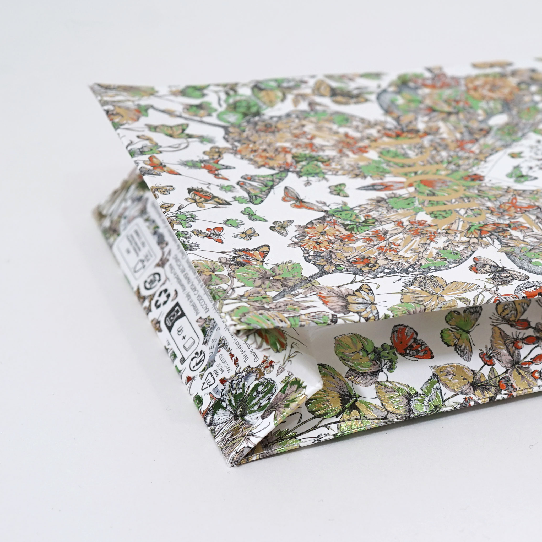 紙袋の内側の口折り部分にも、外側のデザインと連動するように蝶のモチーフが描かれていました。