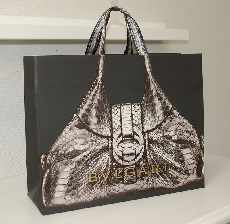 高級バッグがとってもリアルにプリントされた紙袋です。