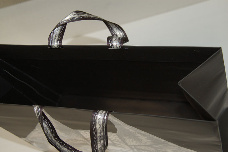 この紙袋の凄いところはハンドルに使われているサテンリボンにプリントして