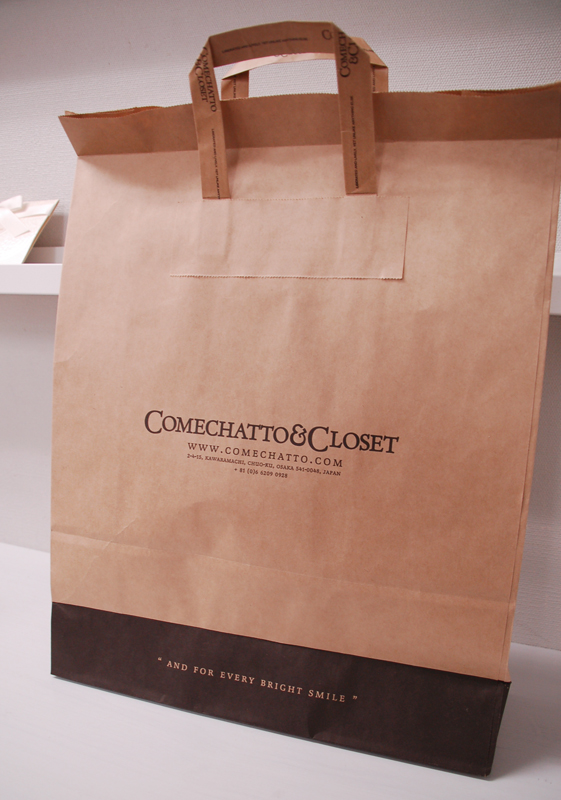 おしゃれなクラフト紙袋2012年12月31日 こんにちは、今日はおしゃれなクラフト紙袋をご紹介させていただきます。 未晒しのクラフトにアメリカンなブラウンでの印刷が素敵な紙袋です。 アメリカンな質感が素敵ですね。 手提げは紙平紐で平紐にもオシャレな印刷がされています。 クラフトの質感を生かした とっても素敵な紙袋ですね。