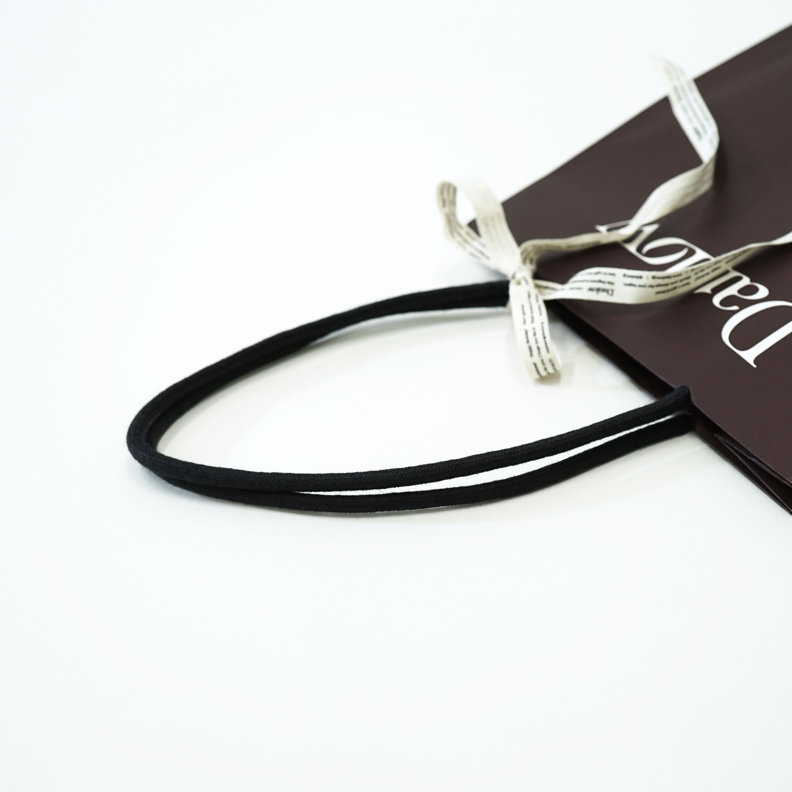ハンドルには、ハイブランドの紙袋にもよく利用されるワックスコードを採用しており、